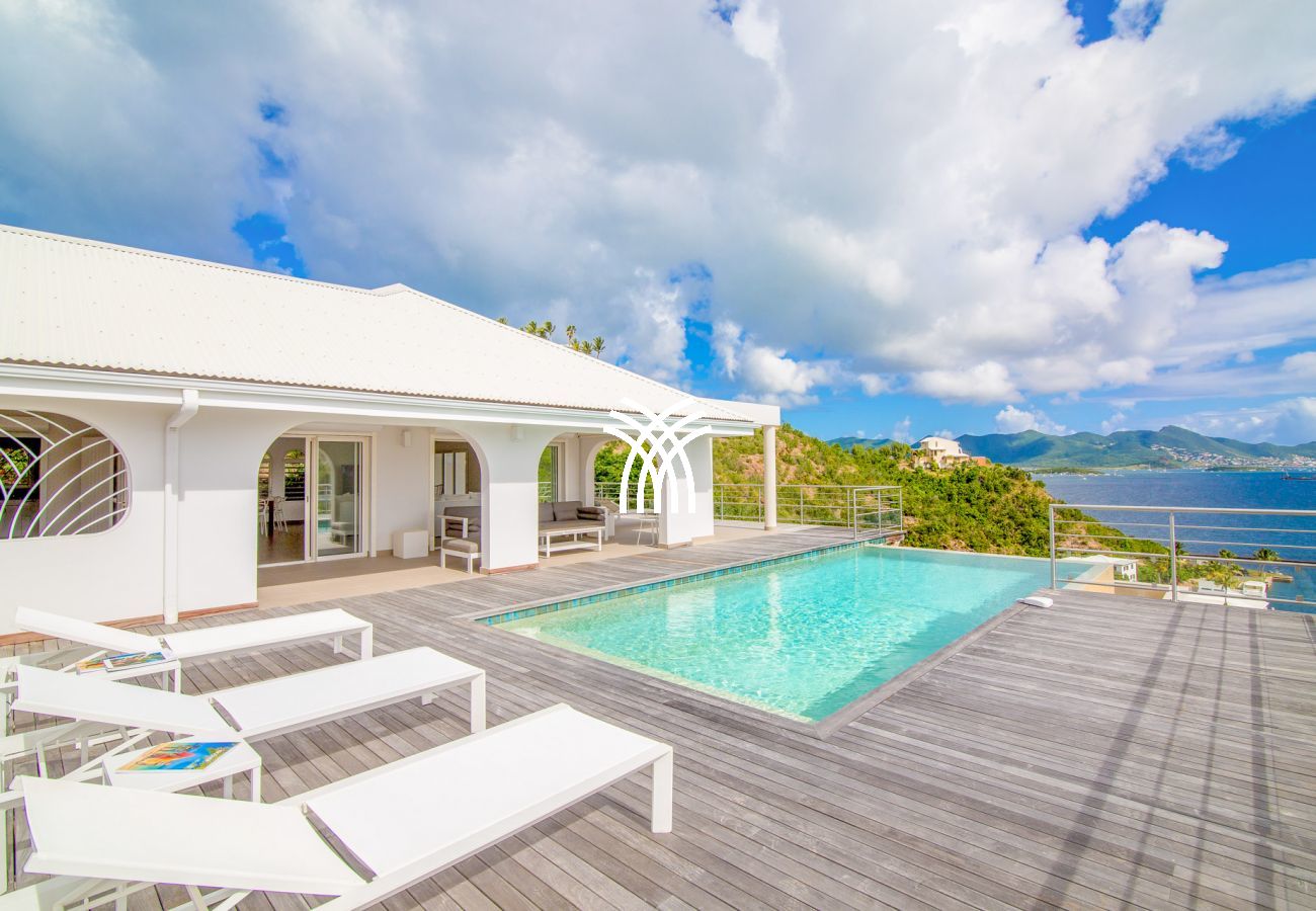 La Villa La Dacha is a luxury villa for rent in Saint Martin, located in the heart of Terres Basses, one of the most exclusive and private neighborhoods on the island. Perched on the side of a cliff, this luxury villa rental in Saint Martin offers a spectacular panoramic view of the Caribbean Sea and the island of Anguilla.