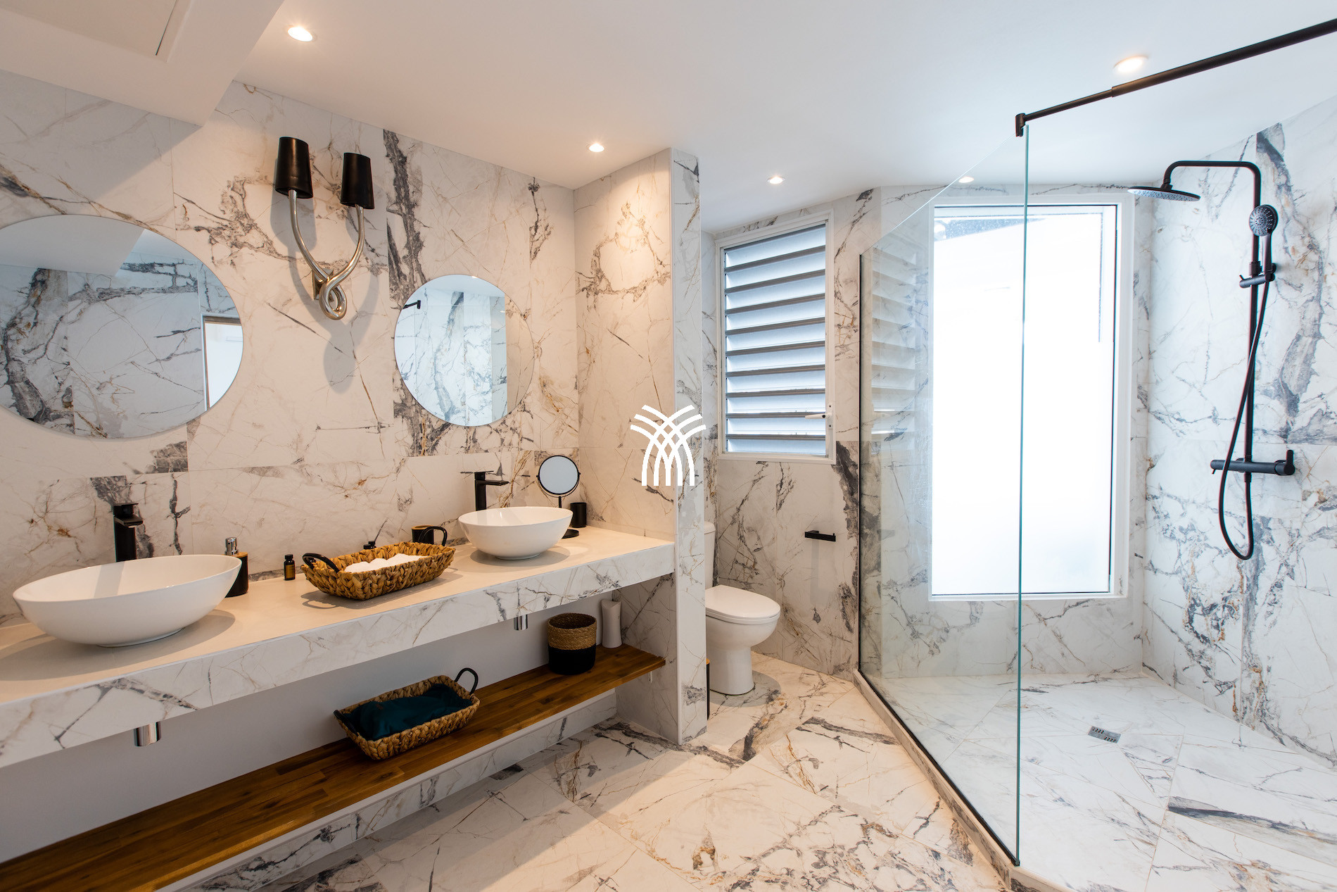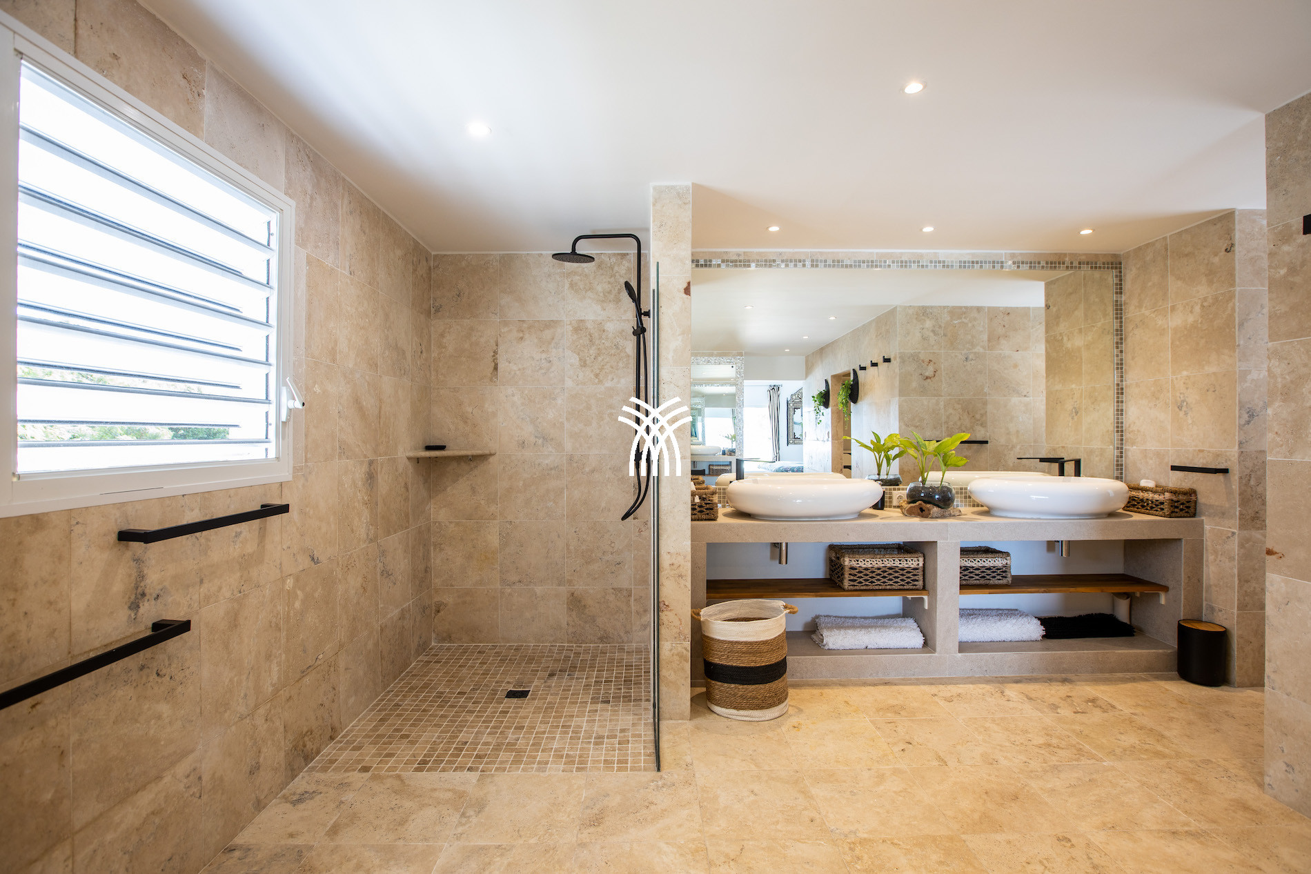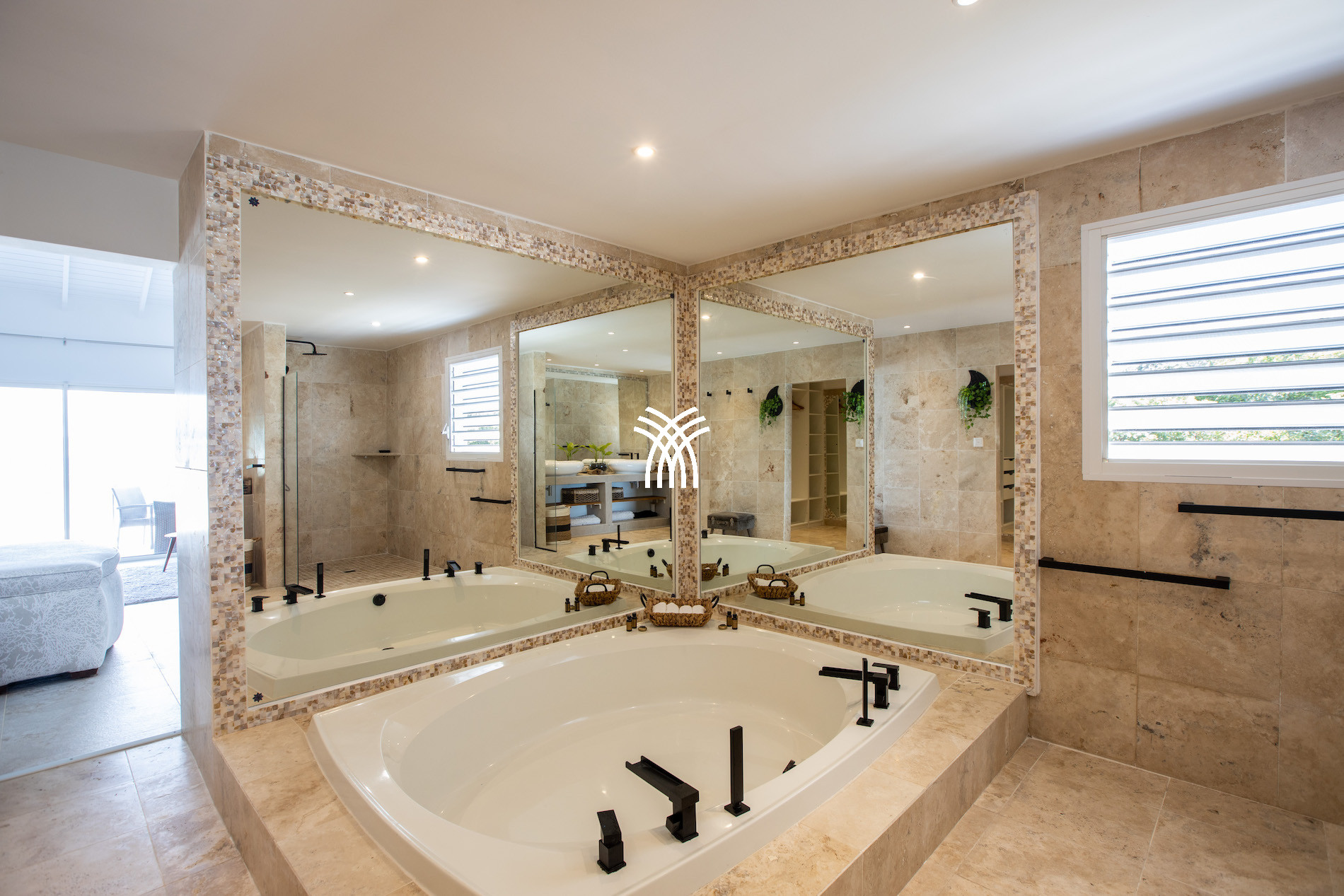 This true architectural masterpiece offers 6 spacious bedrooms, all equipped with king-size beds and private terraces providing an unobstructed view of the Caribbean Sea. The luxurious bathrooms feature indoor and outdoor showers for an authentic and refined tropical experience.