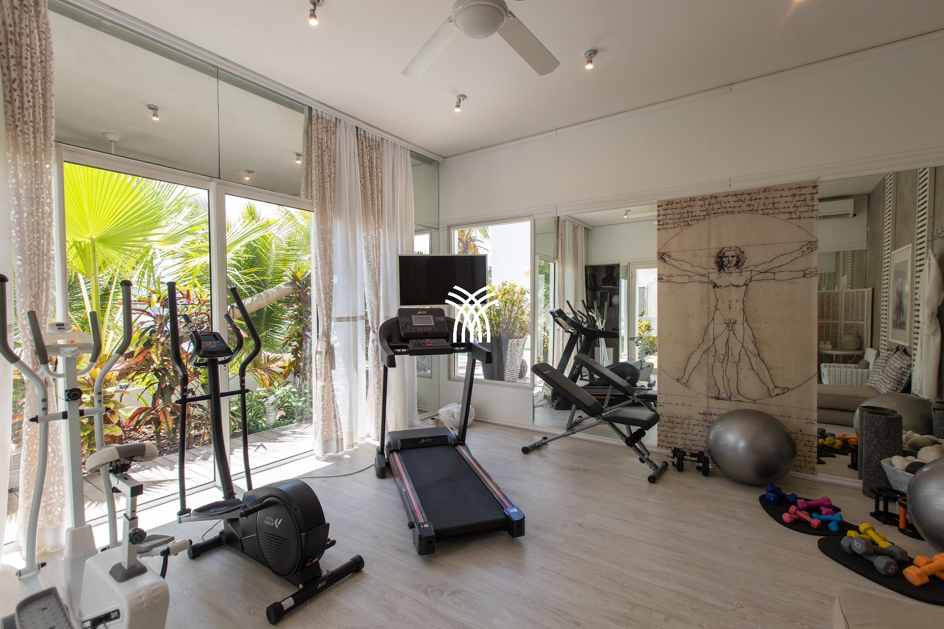 The Villa Aqua Dream is not limited to a simple exceptional residence, it also offers a private gym equipped with the latest technologies to allow guests to maintain their wellness routine while enjoying the paradisiacal setting. The exterior extends to a spacious terrace, with areas dedicated to relaxation and a covered outdoor dining area, ideal for savoring a meal under the stars.