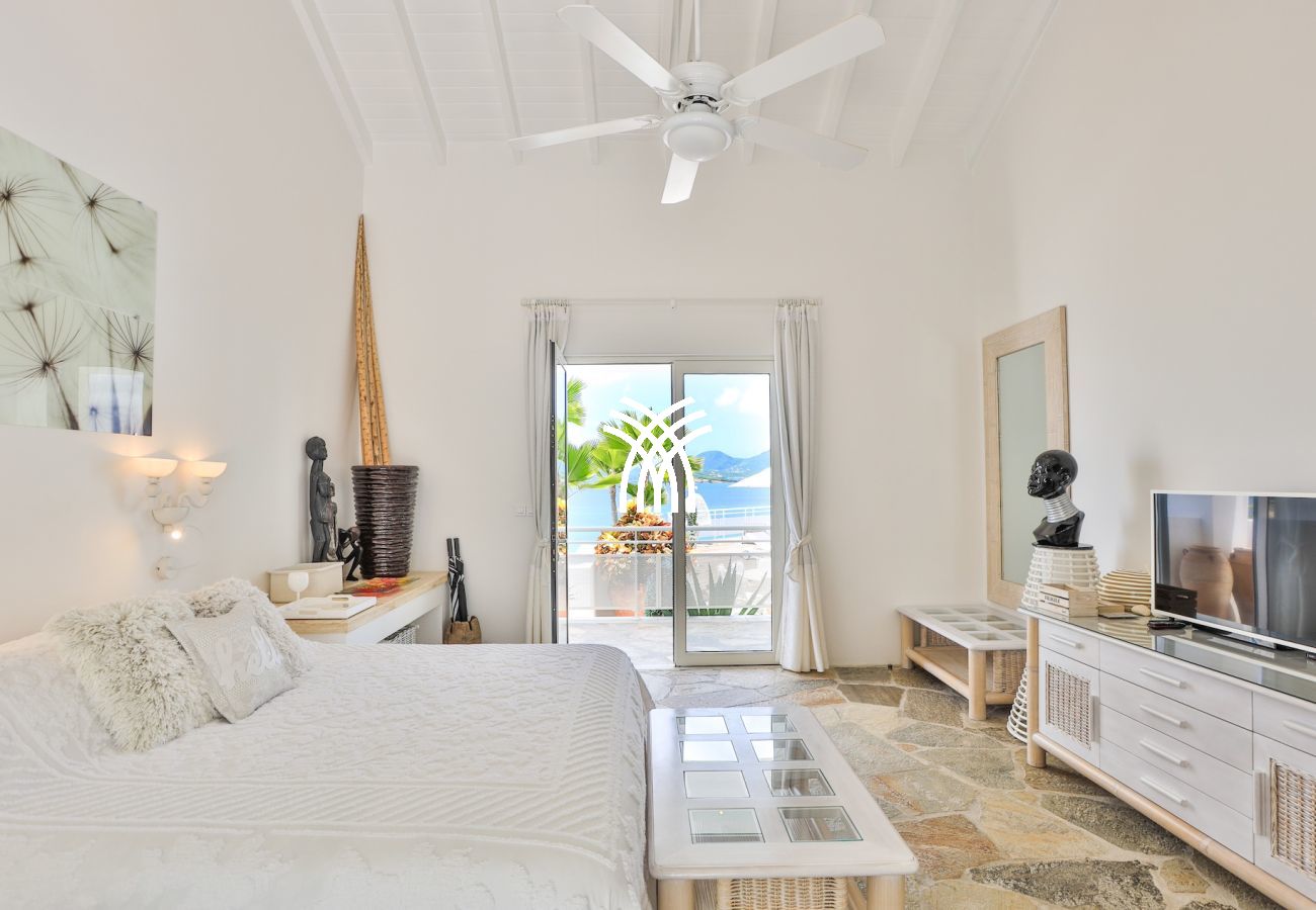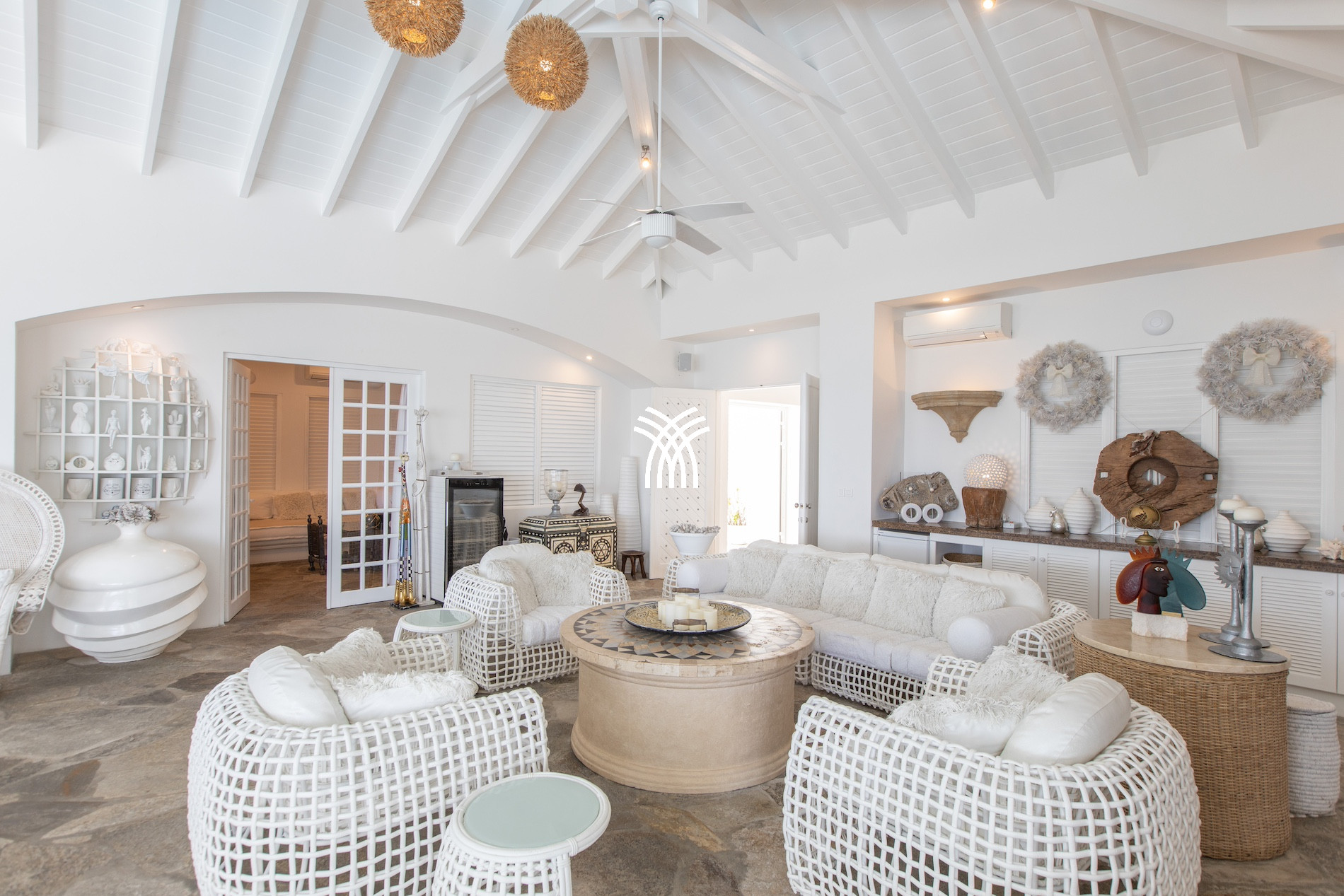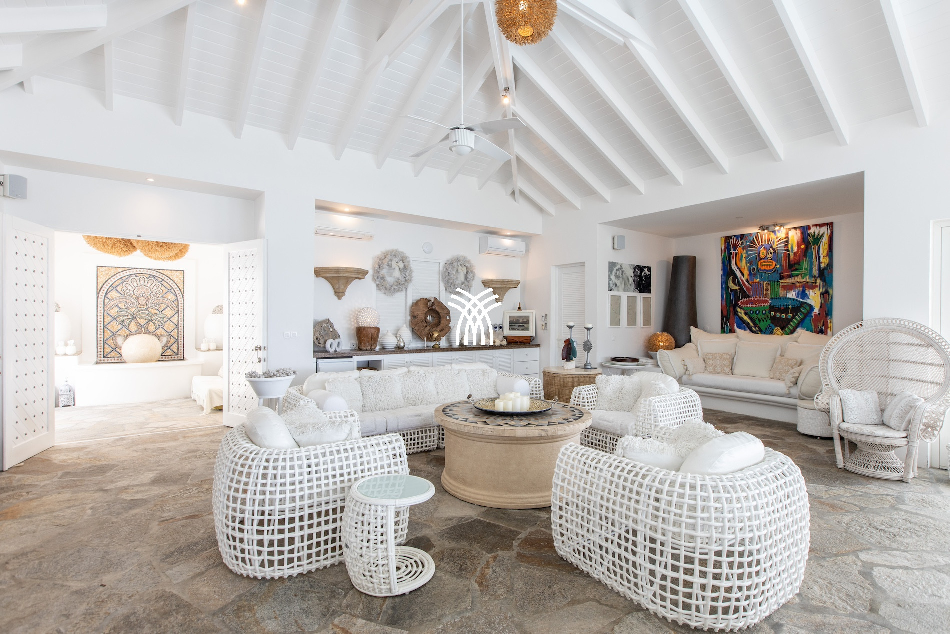 The living spaces of this luxury villa for rent in Saint Martin are designed for comfort and pleasure: a fully equipped kitchen (meals are exclusively prepared by the villa's private chef), a multimedia room with plasma screen, large shaded or sunny terraces, a jacuzzi, a gym, a spa, and relaxation areas facing the ocean.