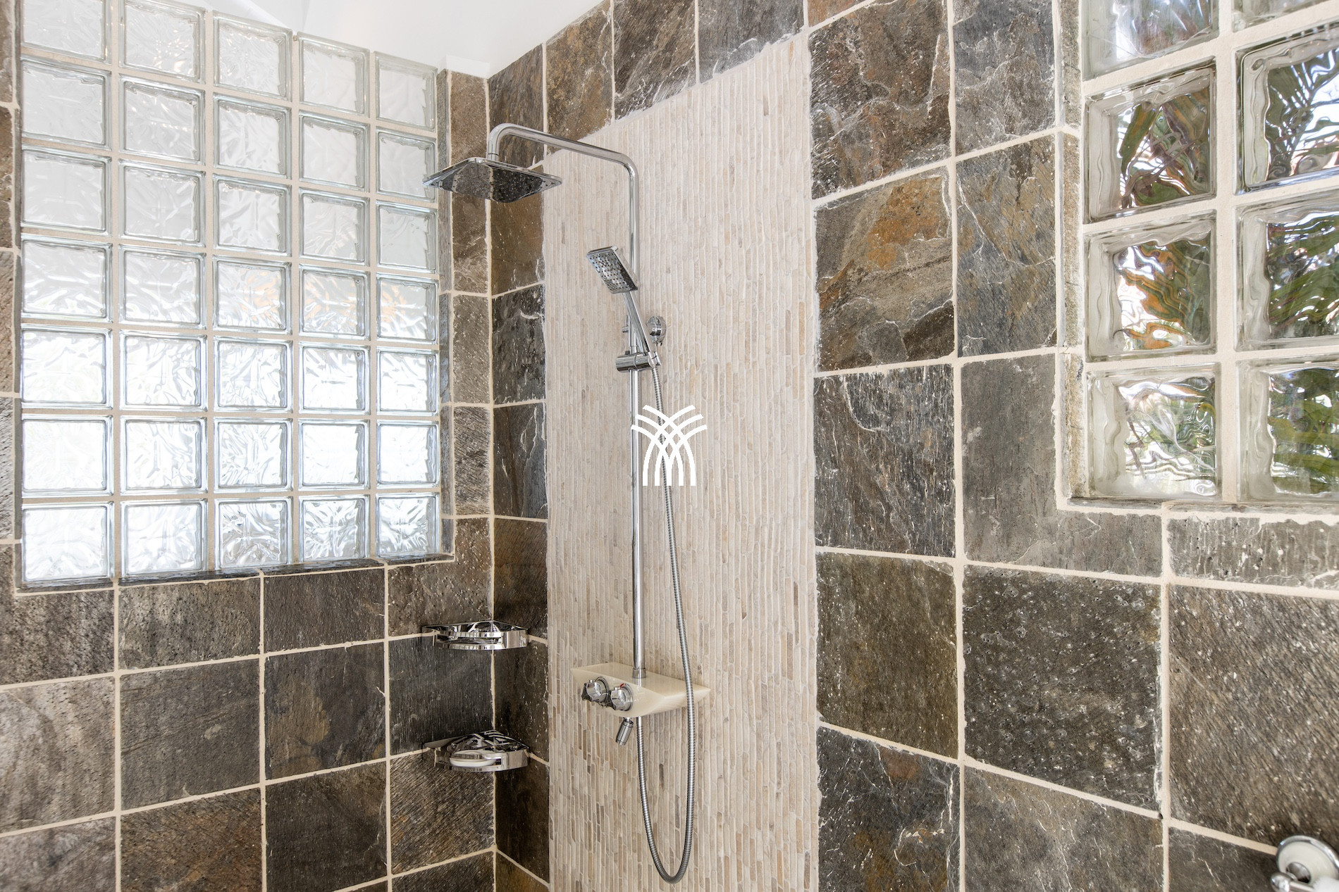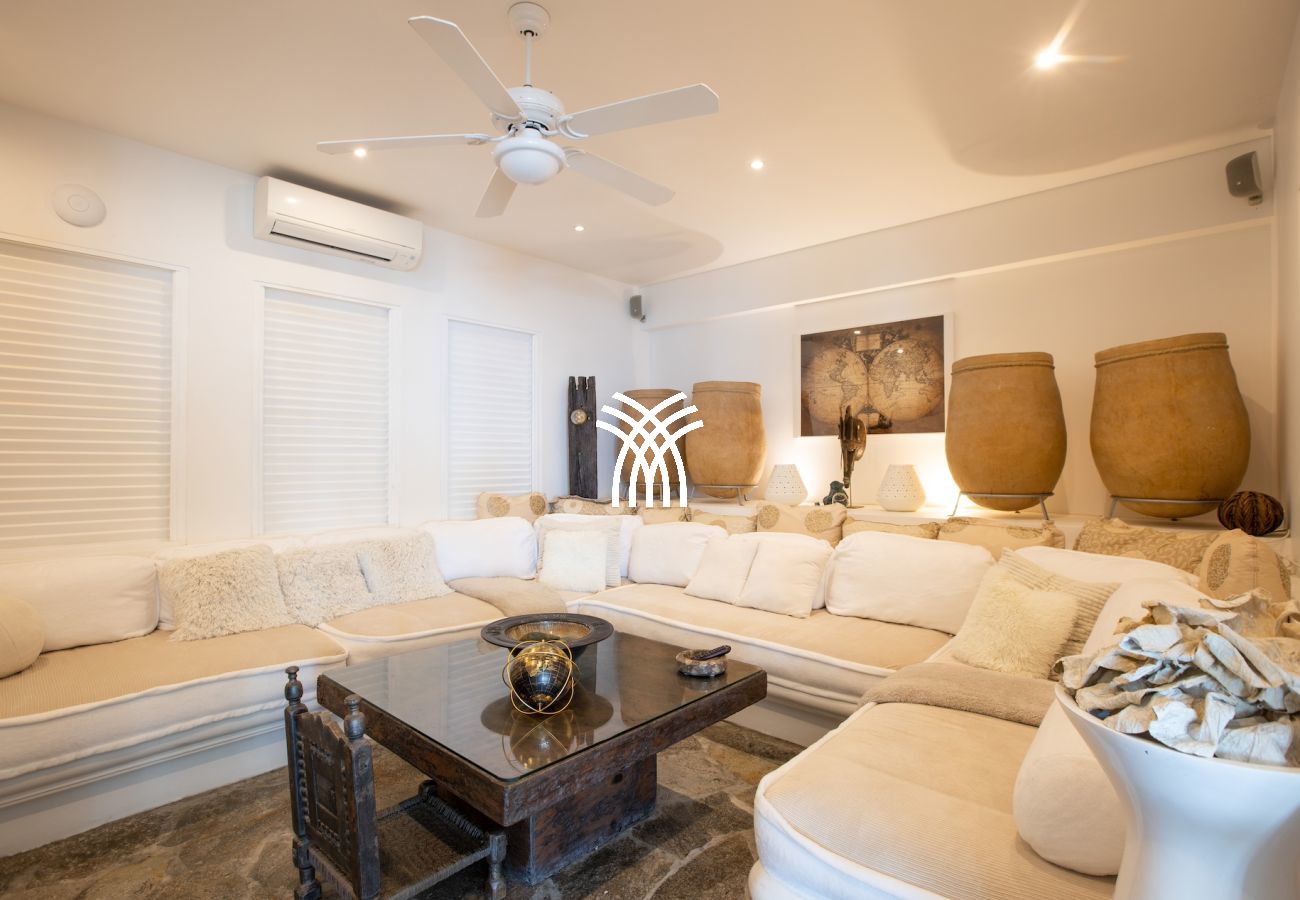 Enjoy the glowing sunsets from the terrace with its large infinity pool that extends under a covered terrace, ideal for bathing at noon in the comfortable shade. The terrace provides a pleasant shaded dining area and plenty of outdoor living areas. The entire interior living space is air-conditioned along with the 5+2 spacious bedrooms. The 2 additional bedrooms are reached via steps and a path from the pool terrace and offer ideal accommodations for teenagers or staff travelling with.