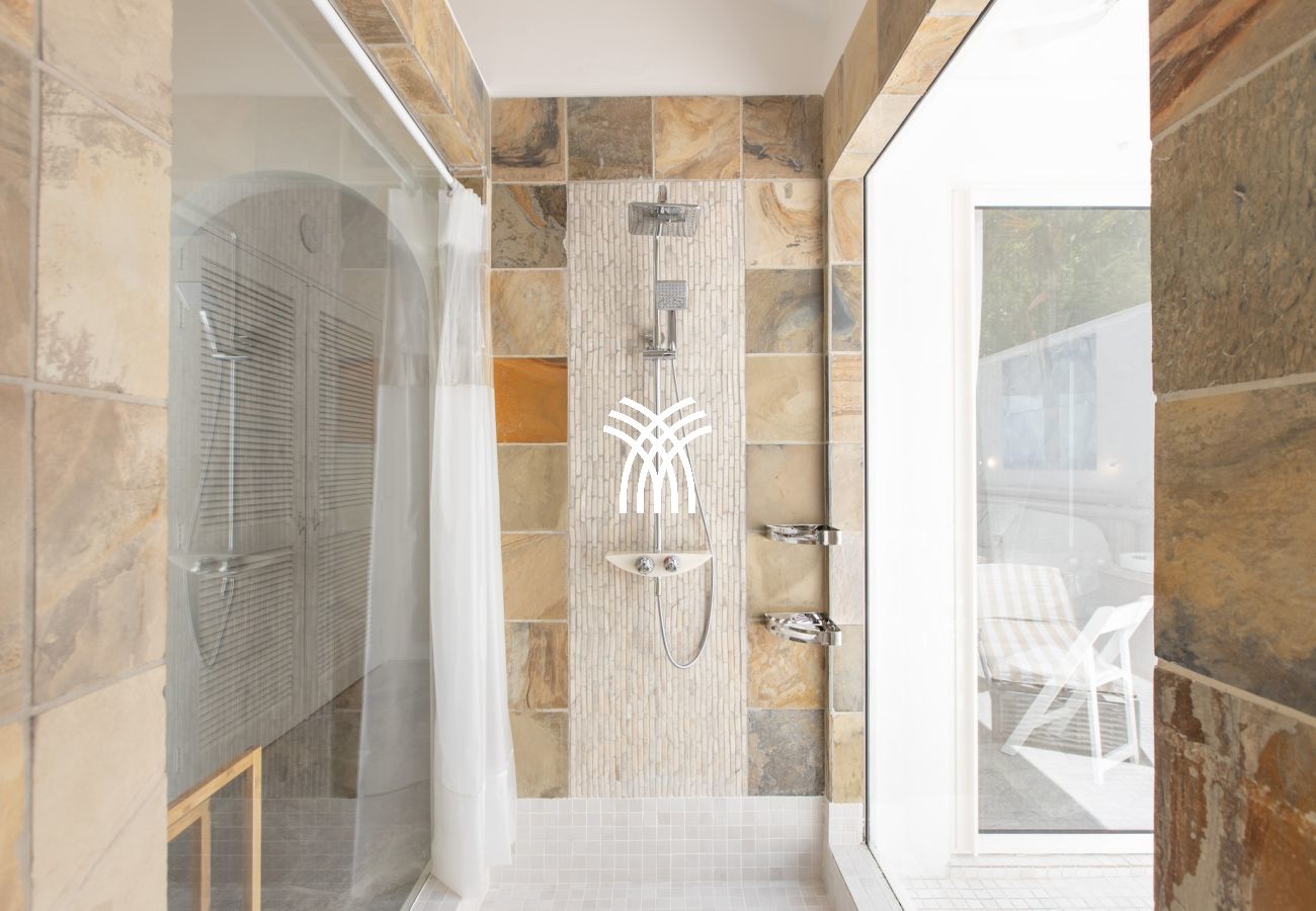 The six rooms, spread across three levels, offer absolute privacy and unparalleled comfort. Each has its own adjoining bathroom, with refined finishes and a panoramic ocean view. The main suite stands out with its elegant bathtub, inviting moments of relaxation facing a breathtaking landscape. The experience is elevated by Italian-style showers and rest areas designed for absolute well-being.