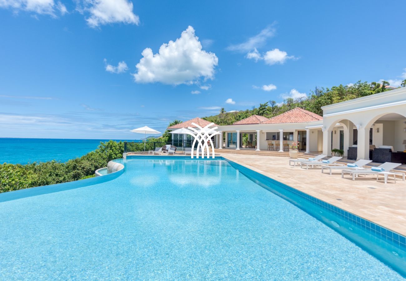 La Villa La Dacha is a luxury villa for rent in Saint Martin, located in the heart of Terres Basses, one of the most exclusive and private neighborhoods on the island. Perched on the side of a cliff, this luxury villa rental in Saint Martin offers a spectacular panoramic view of the Caribbean Sea and the island of Anguilla.