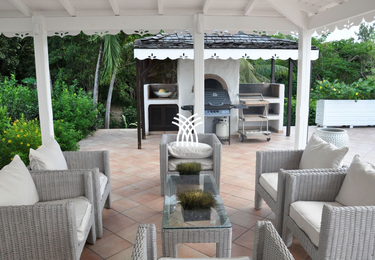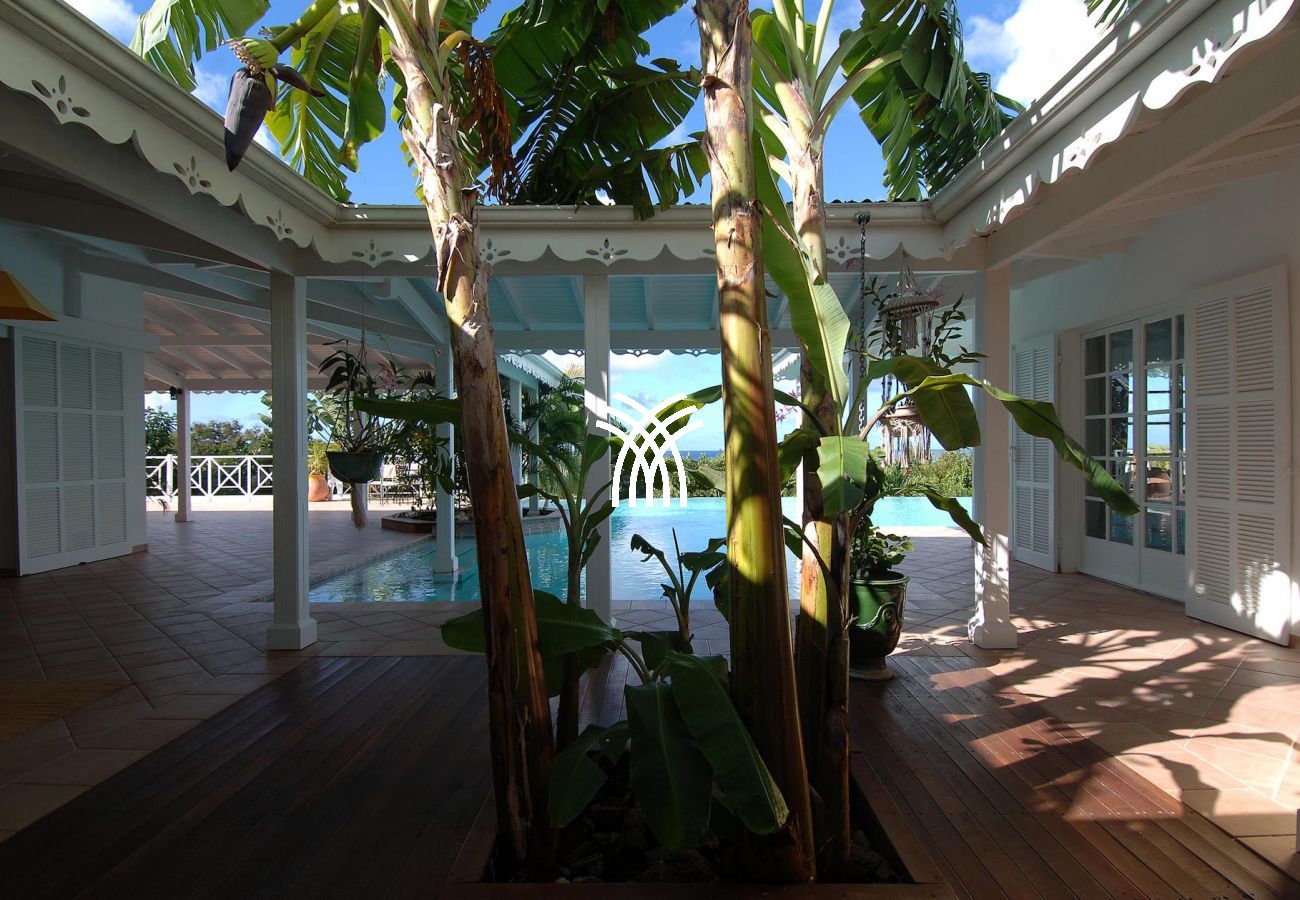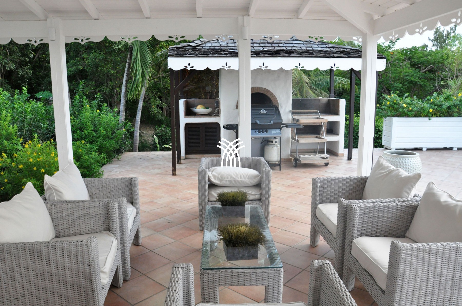The living spaces of this luxury villa for rent in Saint Martin are designed for comfort and pleasure: a fully equipped kitchen (meals are exclusively prepared by the villa's private chef), a multimedia room with plasma screen, large shaded or sunny terraces, a jacuzzi, a gym, a spa, and relaxation areas facing the ocean.
