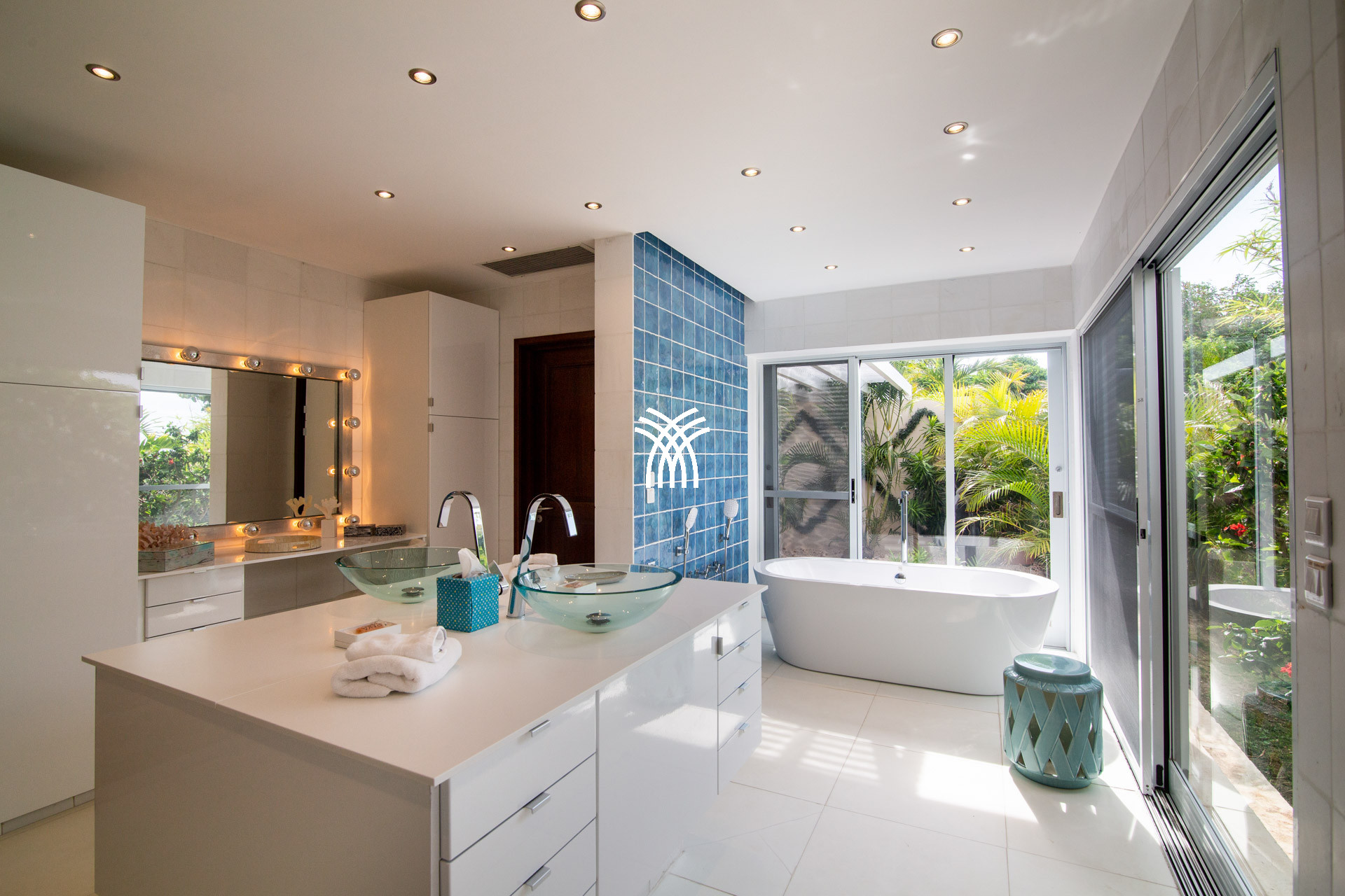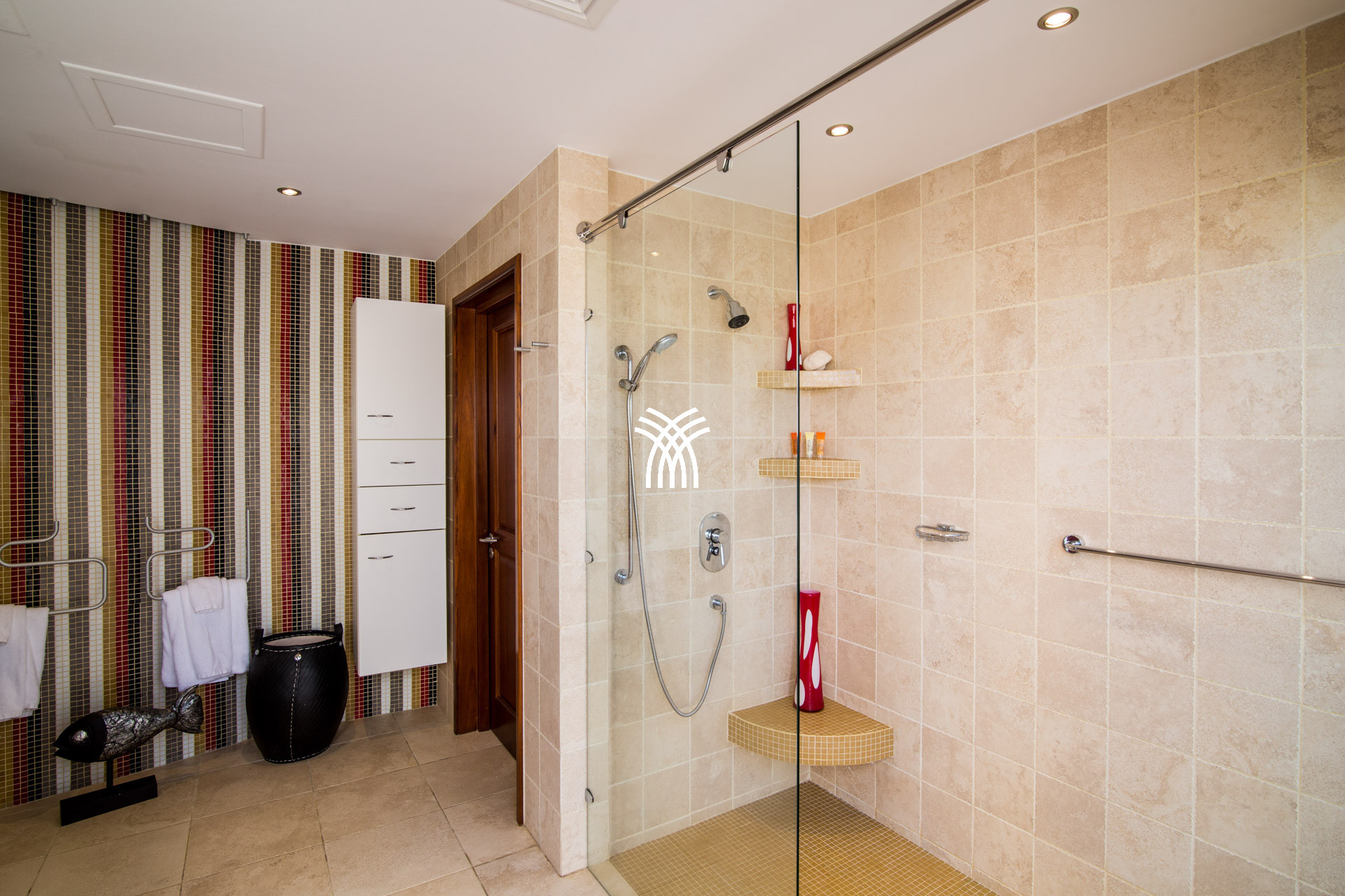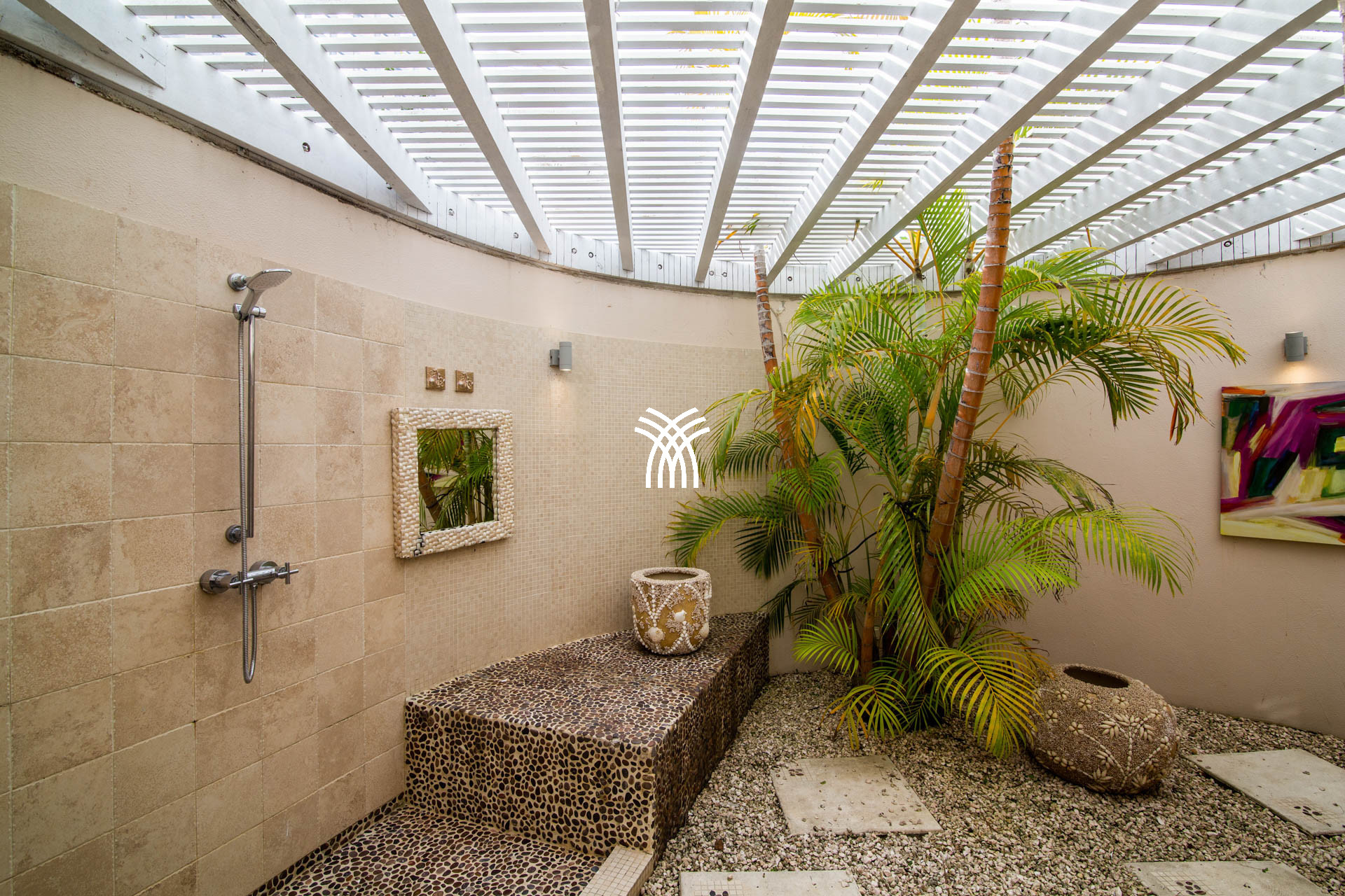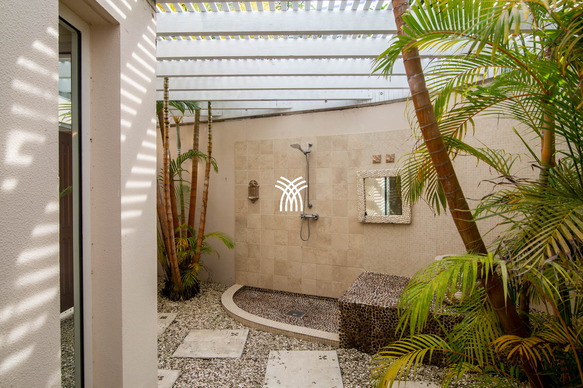 From the moment of your arrival, the panoramic view of the ocean and sunsets blazing across the horizon immerse you in a unique atmosphere. With its 13 elegant and refined rooms, each equipped with its private bathroom — of which seven have an outdoor shower — the villa is designed to accommodate both intimate stays and large family or friendly gatherings. The possibility of renting the property in configurations of 7, 8, 9 or up to 13 rooms allows adapting the space to all group sizes, while always maintaining the same level of comfort and intimacy.