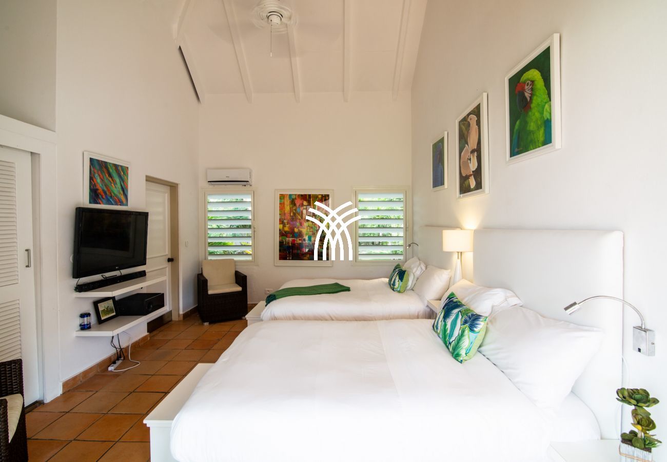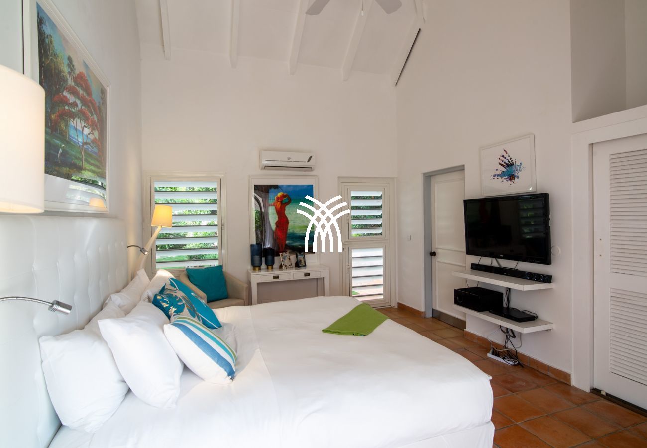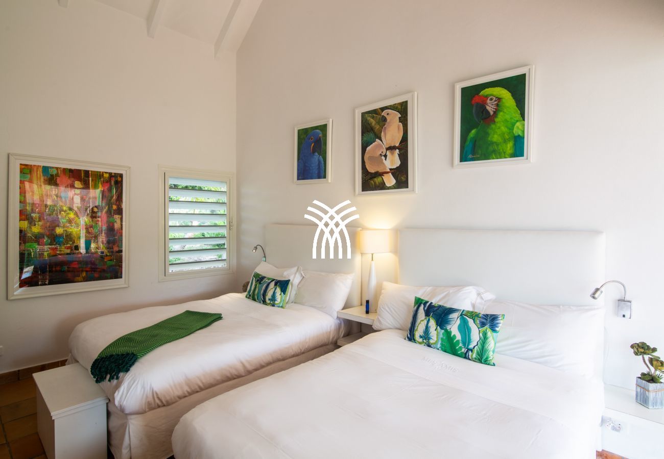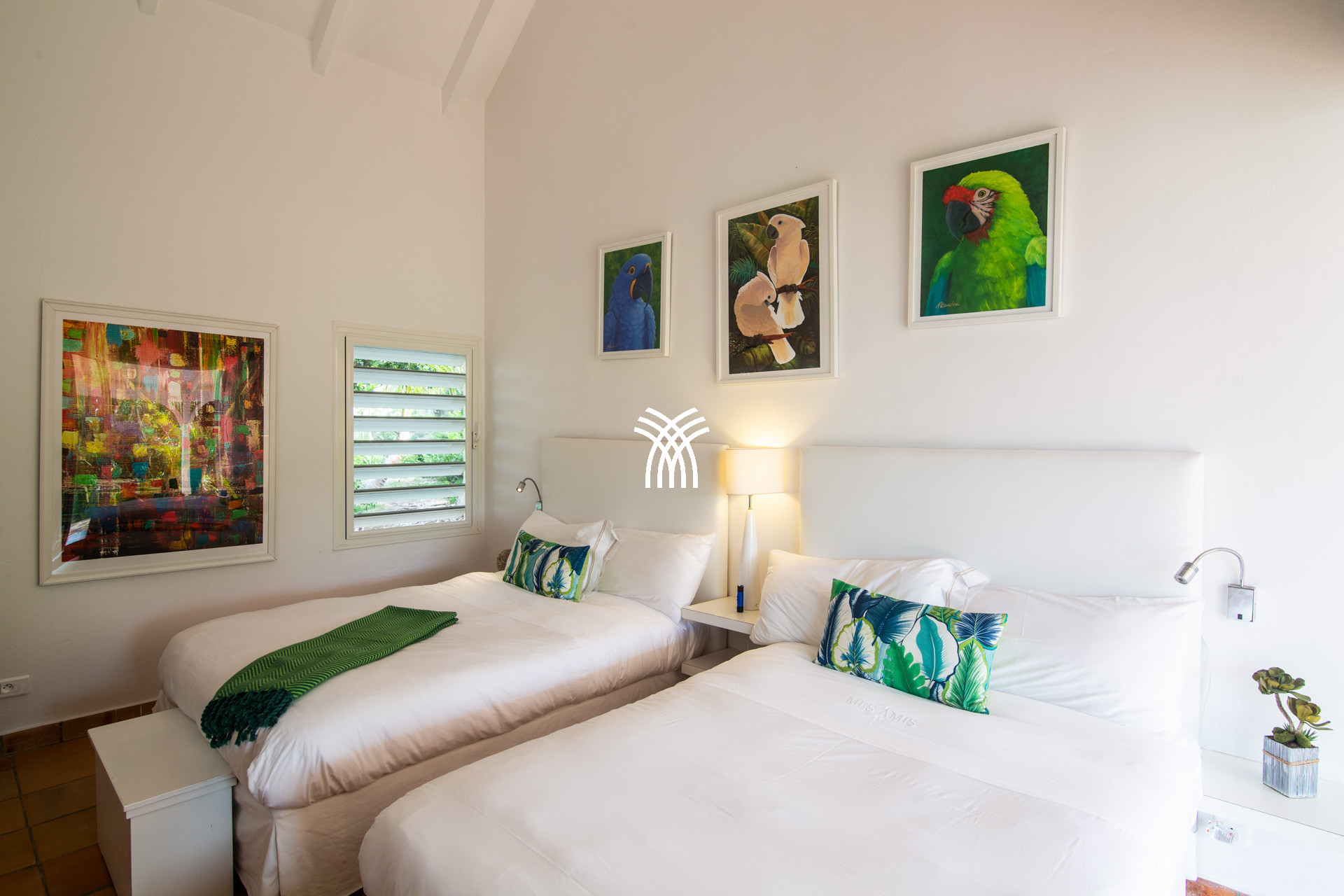 The property also comprises a secondary villa, ideal for offering an independent space to certain guests, adding three additional bedrooms to the main villa. This refinement in space distribution makes Villa Mes Amis a rare and coveted luxury villa rental in Terres Basses.