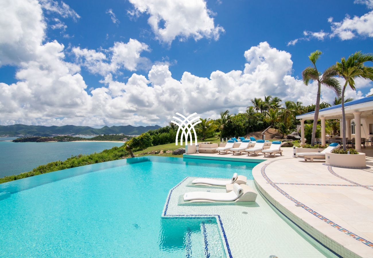 Perched on a spectacular cliff in the heart of the prestigious Terres Basses, Villa Mes Amis is undoubtedly one of the most impressive properties available for luxury villa rental in Saint Martin. Extending over a private estate of more than 5 hectares, this extraordinary residence offers an exceptional setting, where absolute luxury meets the raw beauty of the French Caribbean.