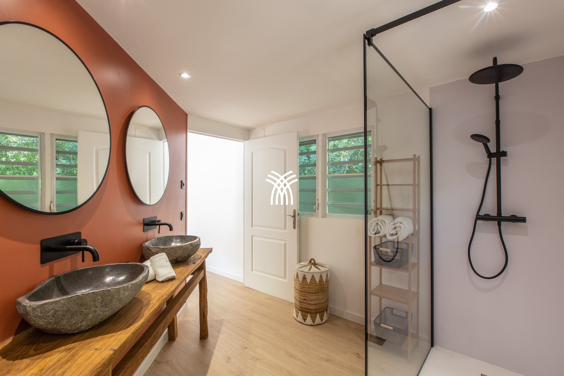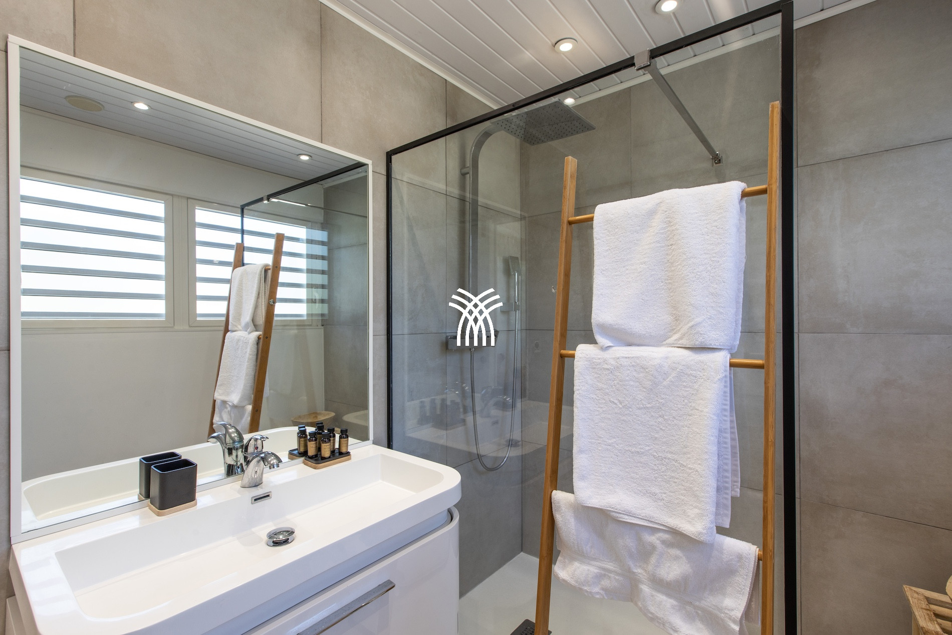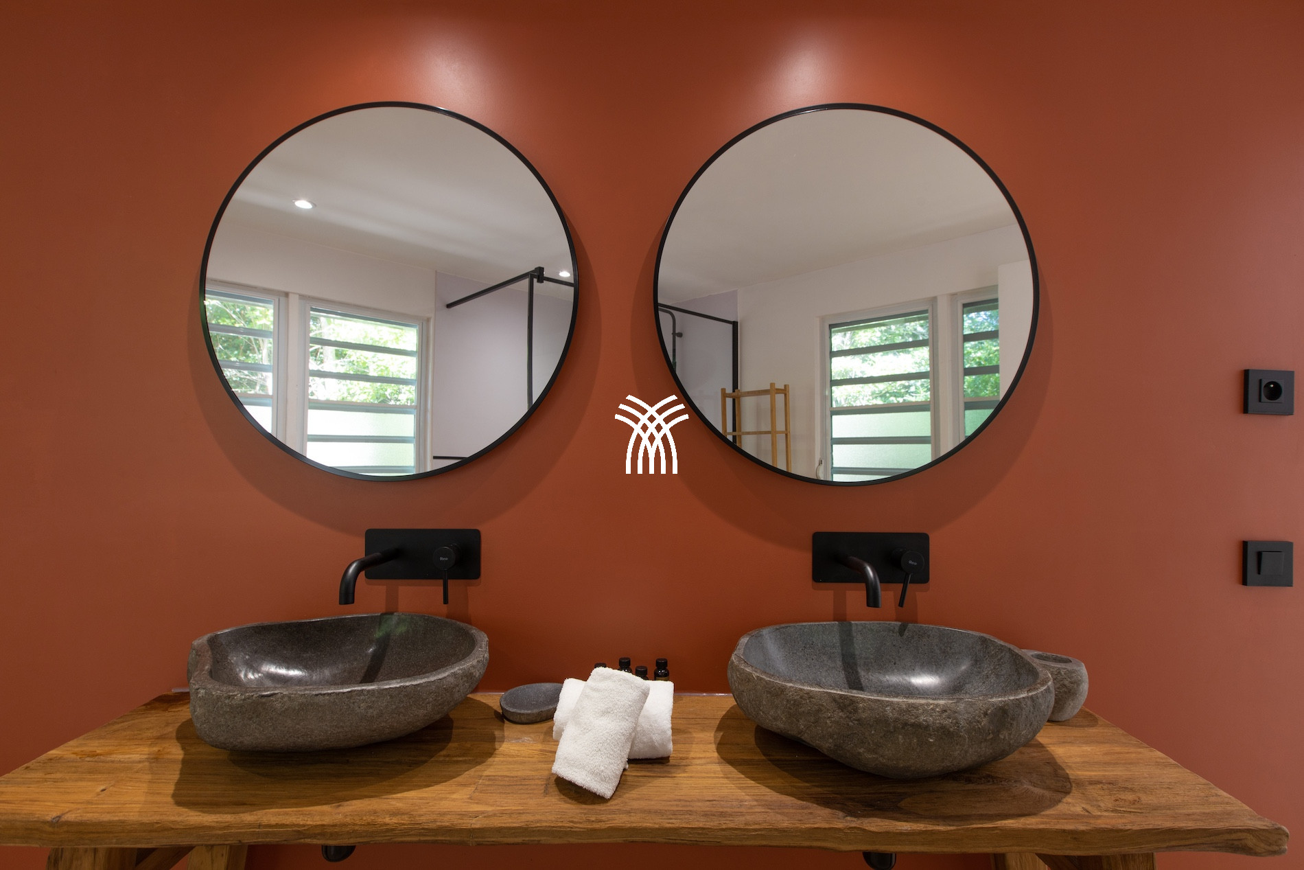 The three rooms of Villa Greystone, all with direct access to the terrace, are distributed in separate units to ensure comfort and privacy for each guest. Decorated with sobriety and elegance, they offer high-end bedding and private bathrooms, ideal for welcoming couples, families or friends in search of serenity. The villa can thus be rented in a two or three bedroom configuration according to your needs, making it a perfectly flexible luxury villa rental in Saint Martin, suitable for all types of stays.
