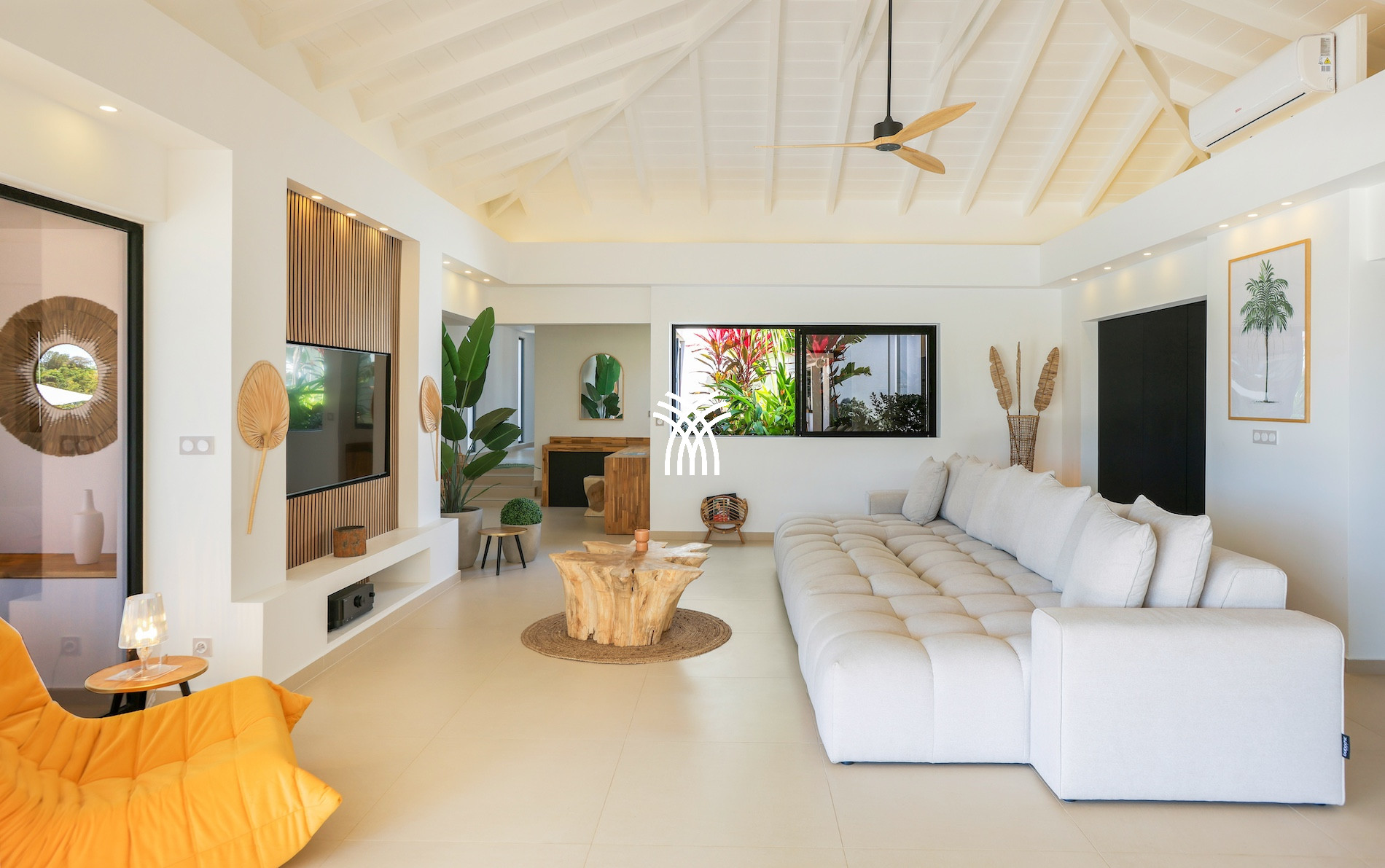 Fully air-conditioned, Villa La Dacha offers a clever blend of contemporary style and Caribbean charm. The interior spaces, bathed in natural light, stand out for their elegance and absolute comfort. The high ceilings, refined furniture, and large openings to the outside create a warm and luxurious atmosphere.