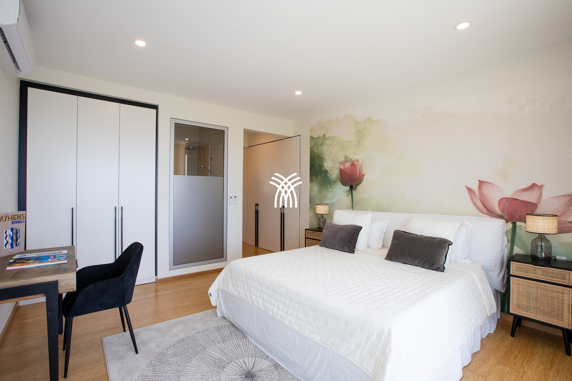 The architecture of the villa favors clean lines and generous volumes, where natural light floods the interiors through immense glass windows. The spacious living room opens onto a spectacular terrace where the infinity pool seems to merge with the azure horizon. The open kitchen, equipped with high-end appliances, invites sharing convivial moments facing an infinite sea. The fluidity between interior and exterior confers a sensation of absolute freedom, accentuated by the sophisticated design and noble materials used.