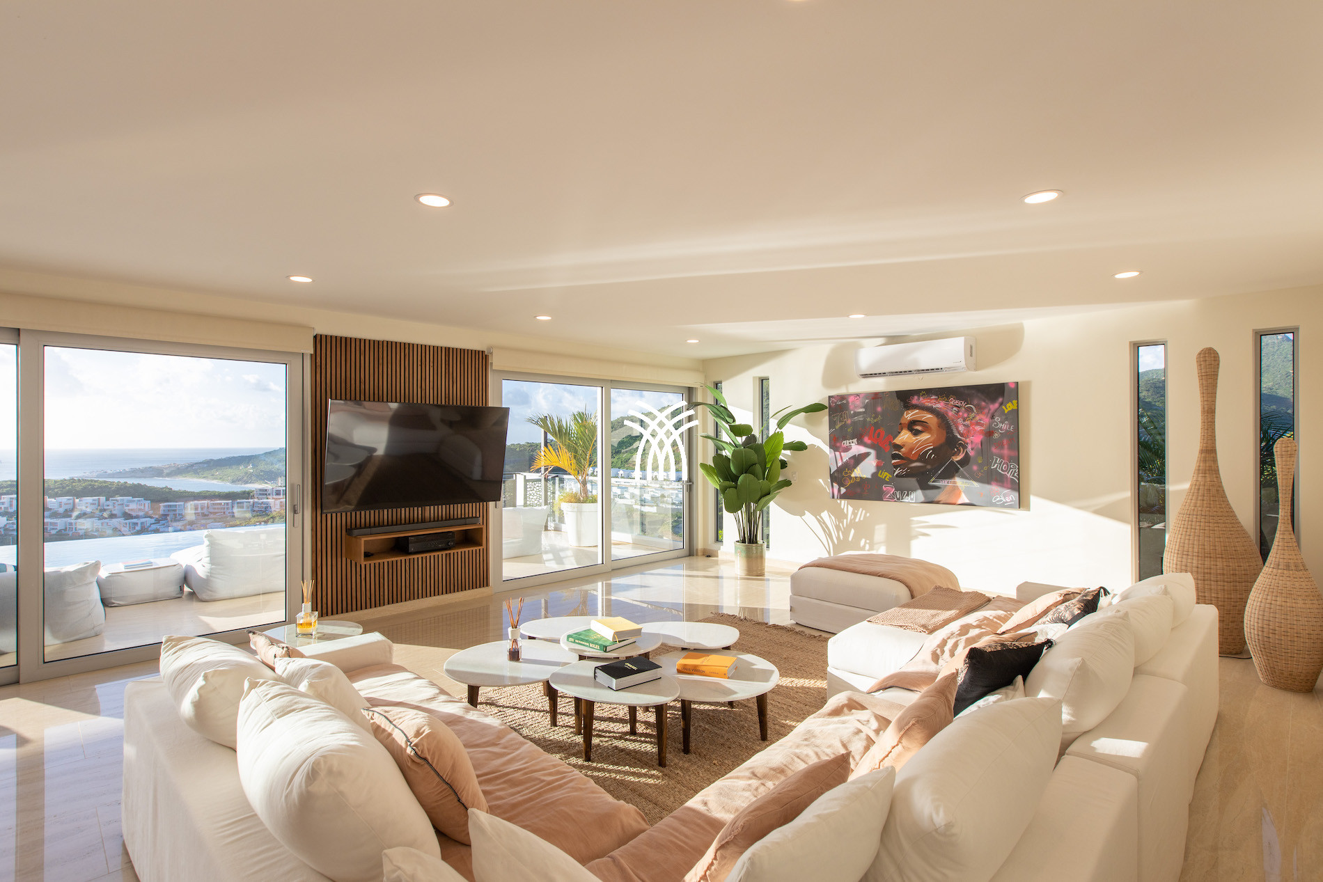 This true architectural masterpiece offers 6 spacious bedrooms, all equipped with king-size beds and private terraces providing an unobstructed view of the Caribbean Sea. The luxurious bathrooms feature indoor and outdoor showers for an authentic and refined tropical experience.