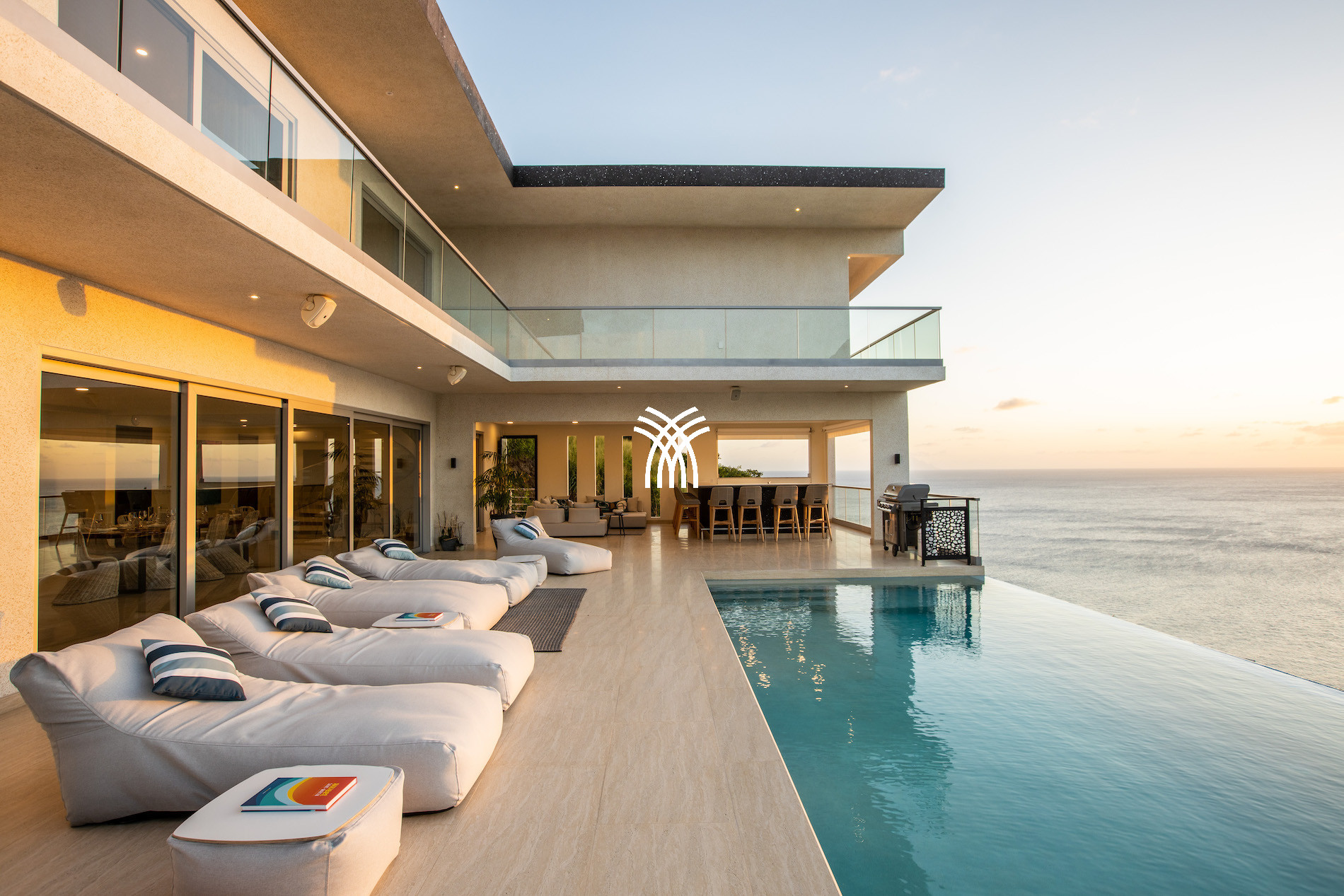 An outdoor bar, a perfectly equipped summer kitchen, and vast relaxation spaces allow you to share convivial moments facing the sea. In the evening, the lights of the Indigo Bay hills and the passing boats create a magical atmosphere.