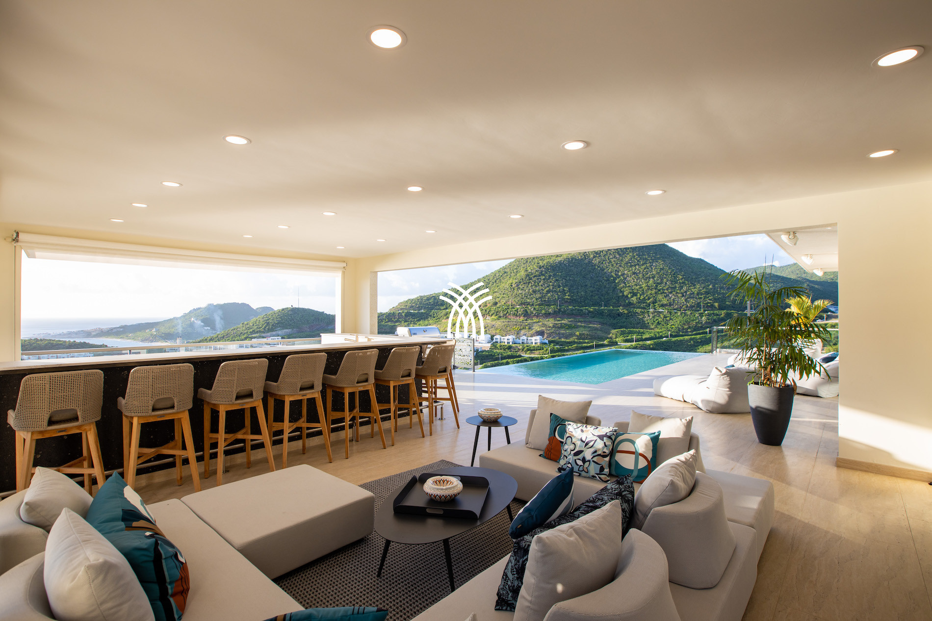 The Villa Numa is a luxury villa for rent in Saint Martin, located on the heights of Indigo Bay, in a private and secure residence. This luxury villa rental in Saint Martin offers an exceptional panoramic ocean view and spectacular sunsets, perfect for an unforgettable stay in the Caribbean.