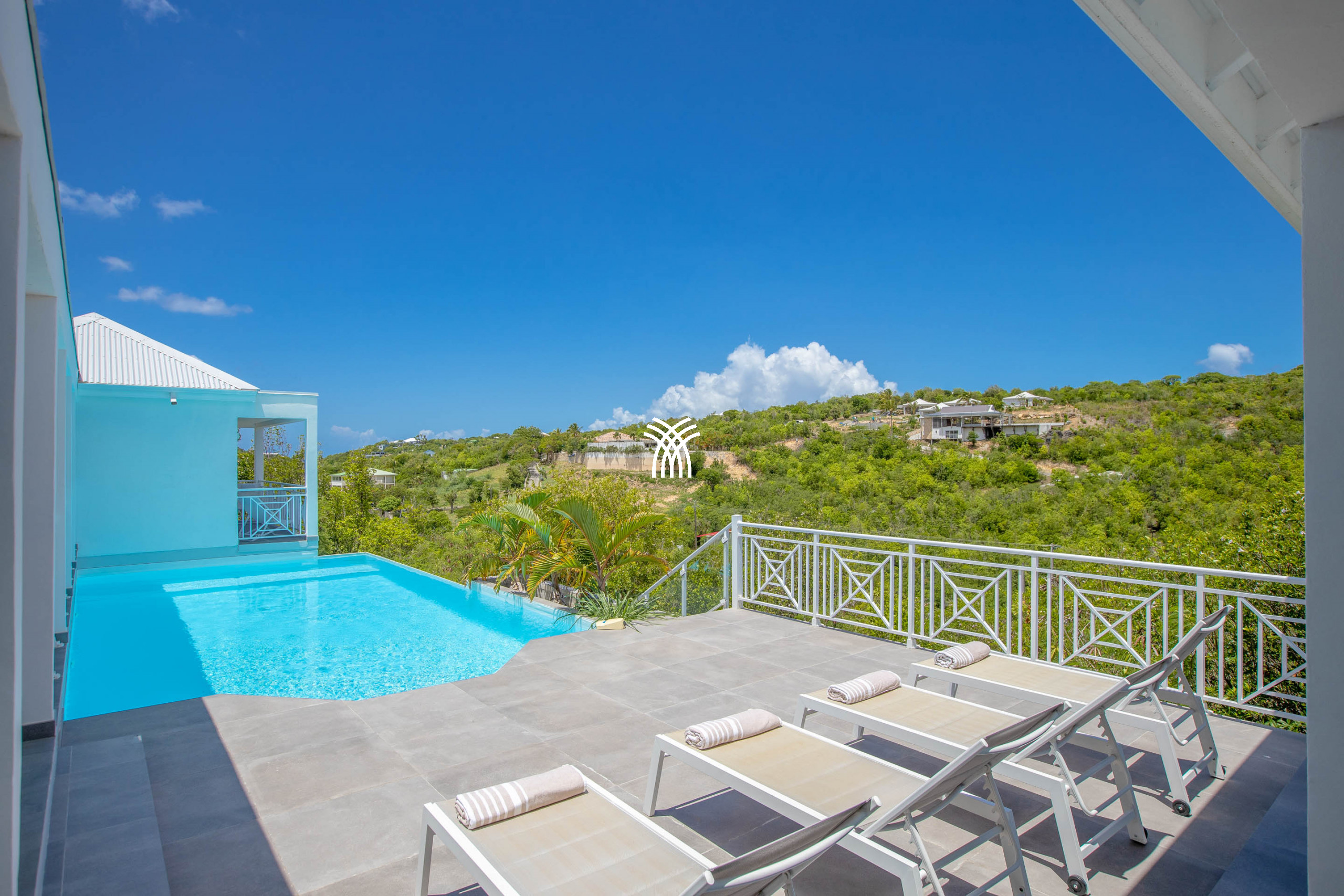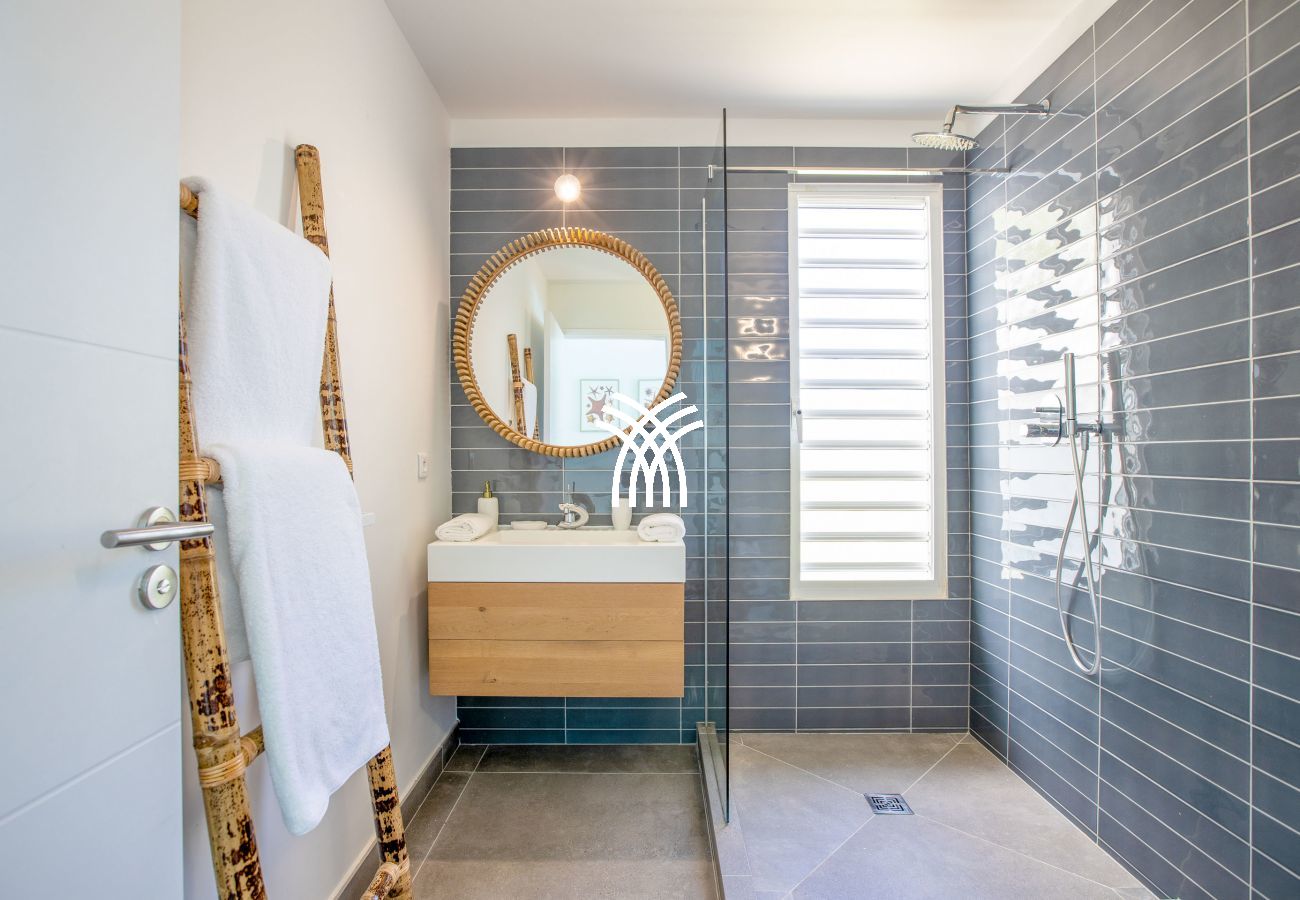 The Bahia Blue Villa is a magnificent luxury villa for rent in Saint Martin, nestled in the heart of a verdant setting, near the sought-after beaches of Terres Basses. Surrounded by a lush tropical garden, this charming villa offers an exceptional setting for a peaceful stay in nature, while enjoying the comfort of a luxury villa.