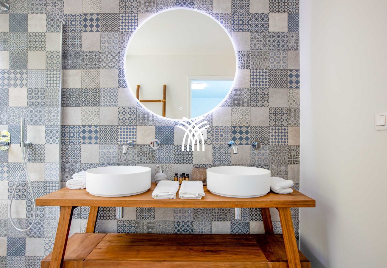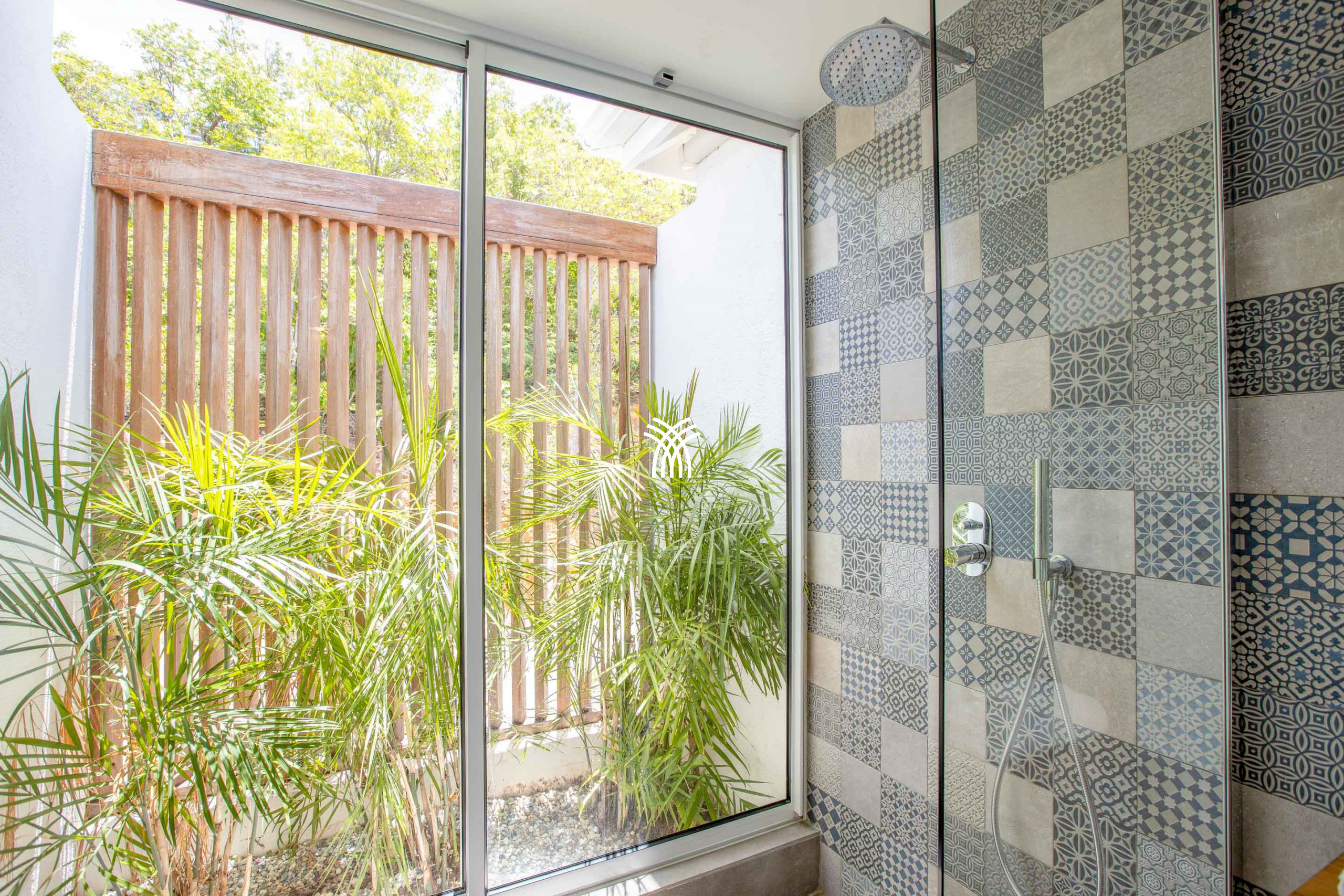 The Villa Bahia Blue offers 4 bedrooms of equal size, all comfortable and perfectly equipped. Two bedrooms are accessible from inside the house and offer a pleasant view of the tropical garden. The other two bedrooms are located at the lower pool level, accessible from the outside. One of the bedrooms even has an outdoor shower on its private terrace, for a unique outdoor experience.