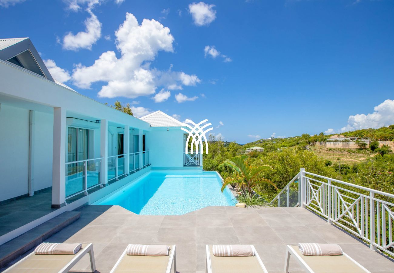 The Villa Smart in Saint Martin is an exceptional address nestled on the heights of Mont Rouge, offering a panoramic view of the Caribbean Sea and the prestigious shores of Baie Rouge. This luxury property, designed for relaxation and elegance, stands out as one of the essential references for a luxury villa rental in Saint Martin, particularly in the exclusive Terres Basses sector.