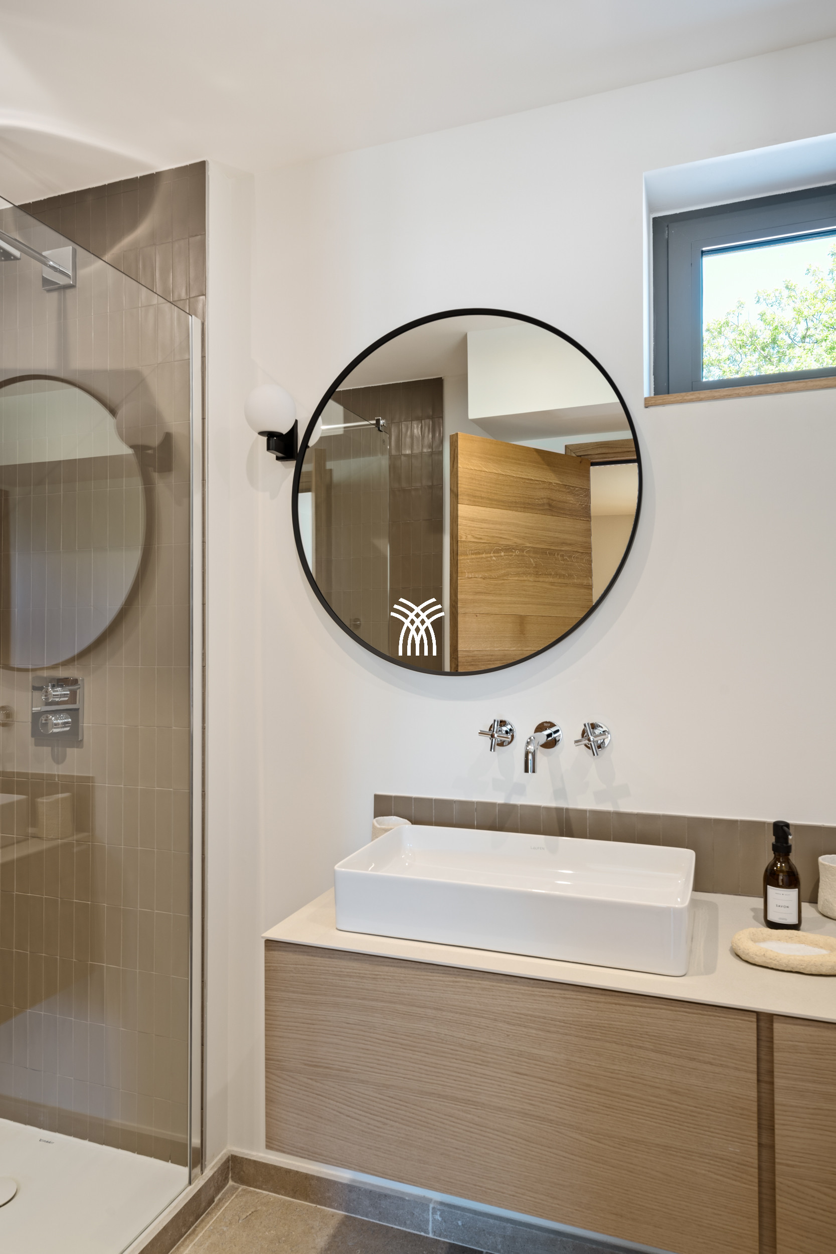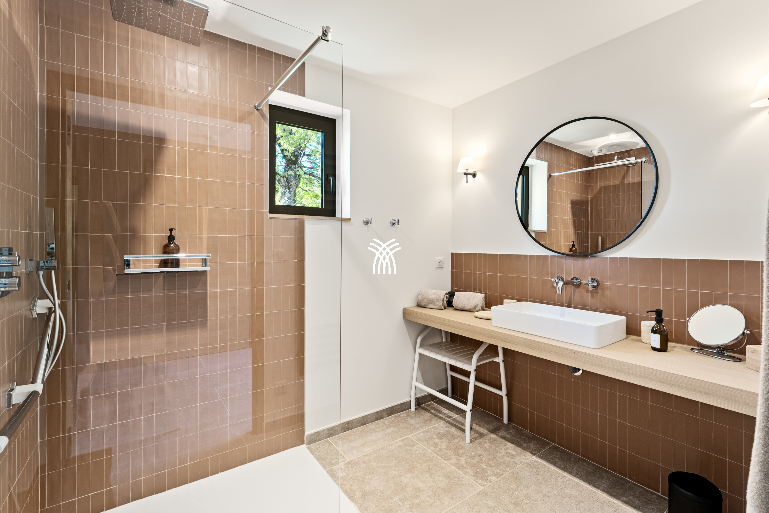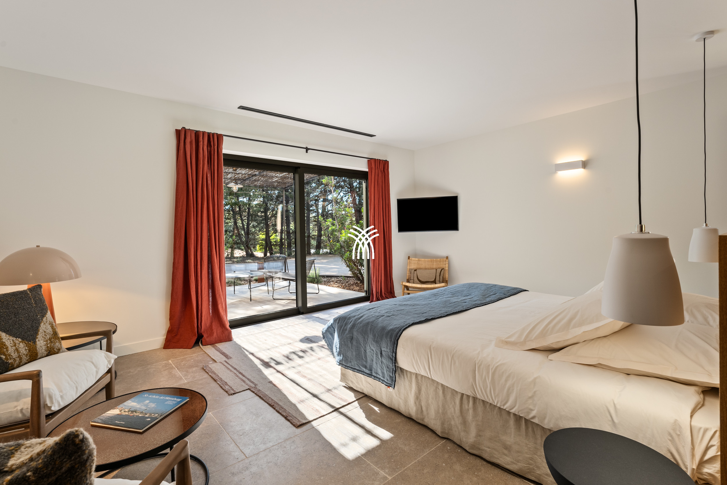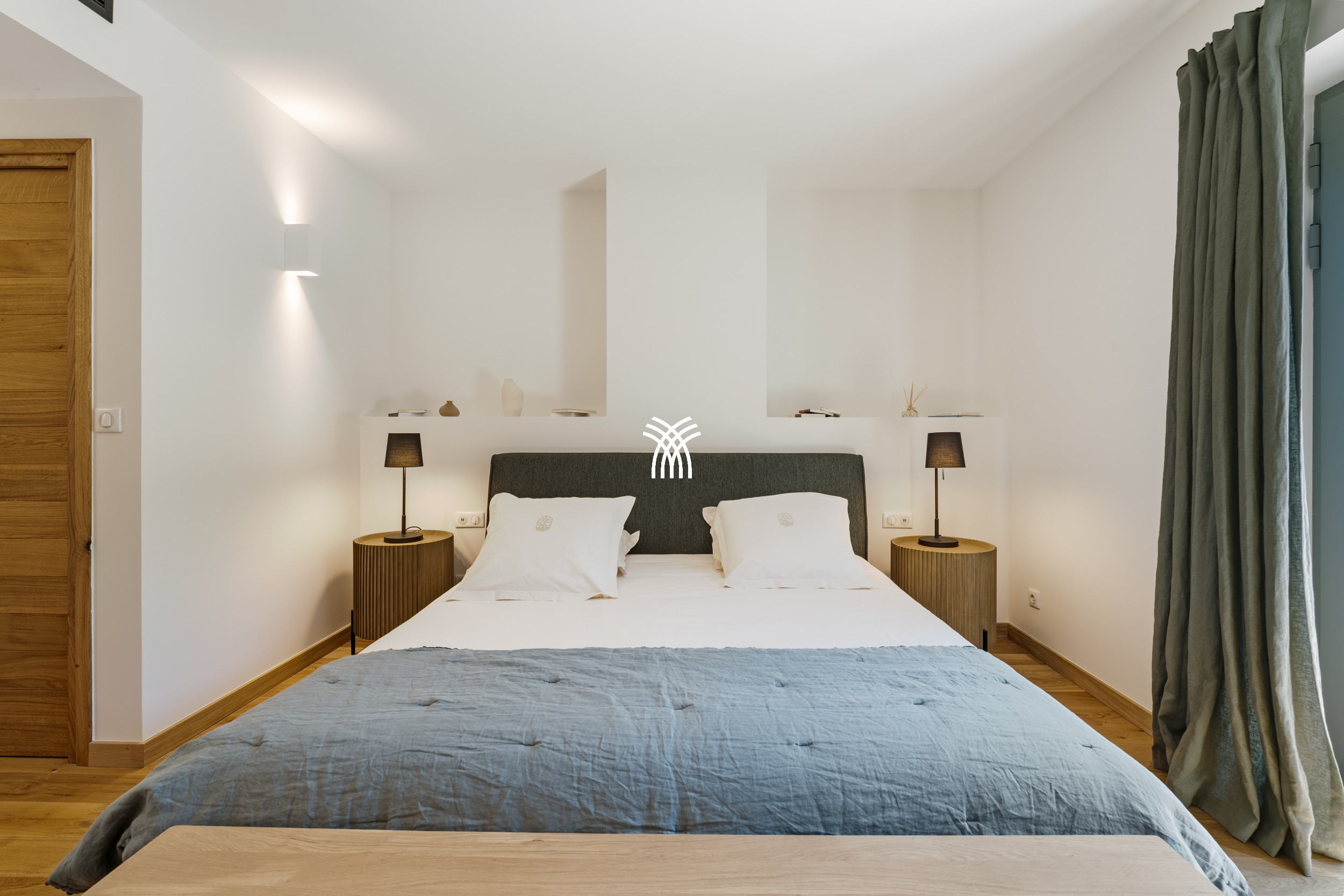 Blending modern sophistication with timeless Provençal charm, the décor gracefully combines wood, metal, and stone, seamlessly integrating with the lush vegetation that surrounds the estate. In this idyllic haven, conviviality defines every moment, whether gathered beneath the shade of a majestic centuries-old oak or enjoying the warmth of thoughtfully designed interiors. A generous kitchen, expansive terraces, and inviting armchairs create the perfect setting to prepare and savor local cuisine, unwind during cool summer evenings, or simply reconnect with the tranquility of an unspoiled environment.