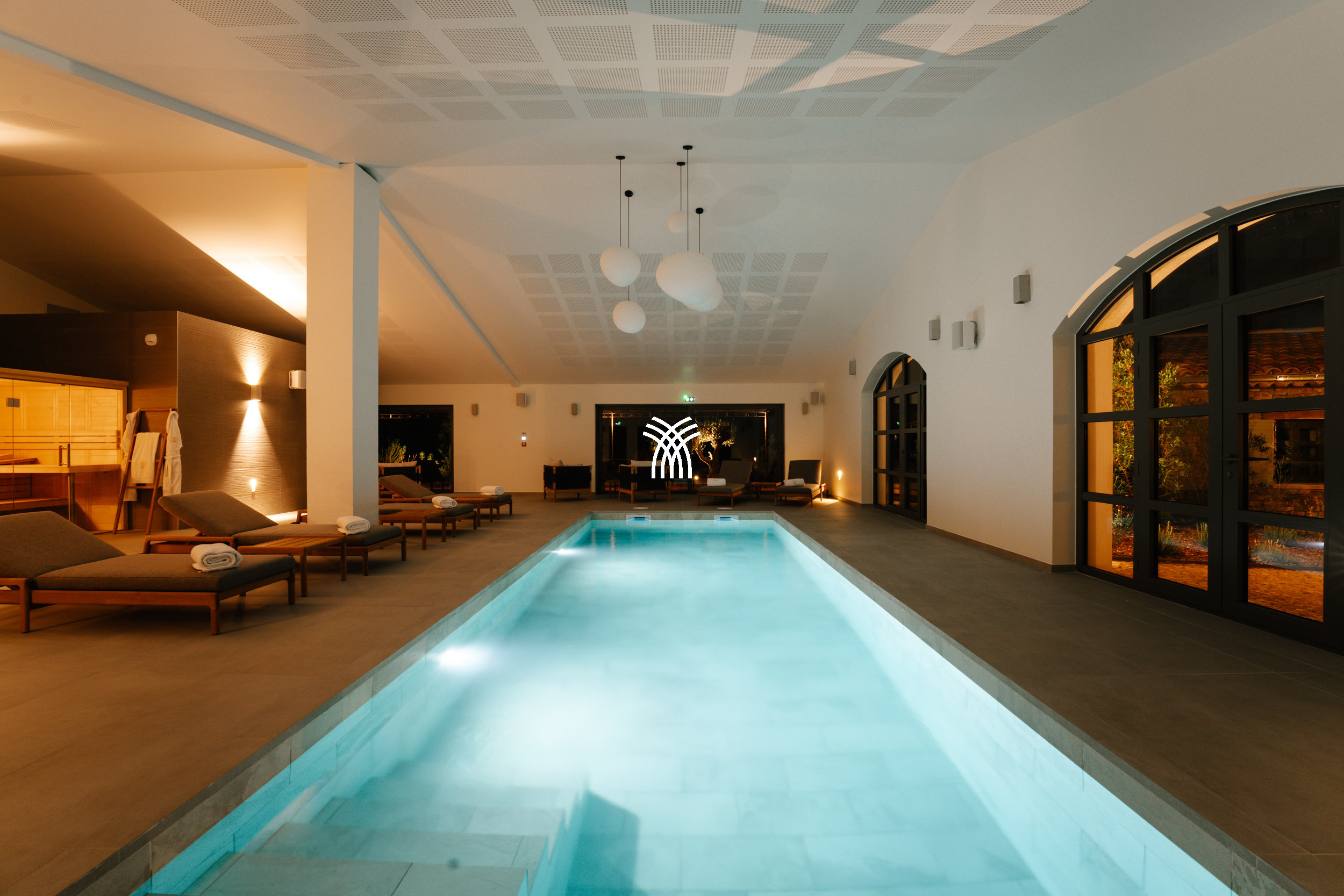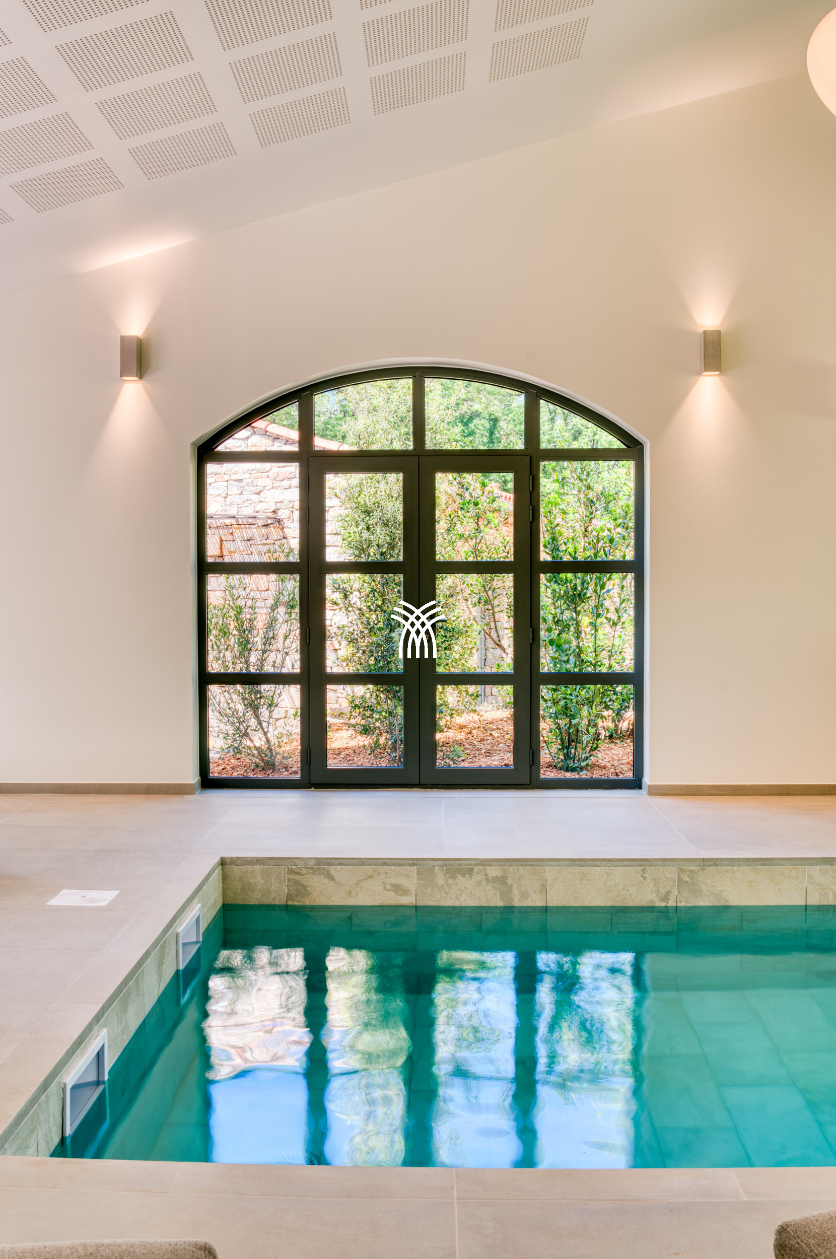 At the heart of the hamlet, a dedicated wellness area enhances the experience with a private massage room, professional fitness equipment, sun loungers, a sauna, and a heated indoor pool, offering a sanctuary of relaxation and rejuvenation. Outdoors, nestled within lush greenery, a large secure swimming pool awaits, complete with sun loungers and parasols, ideal for basking in the Provençal sun. Leisure continues with pétanque, a free-access tennis court with rackets and balls provided, and electric bikes available for rent, inviting exploration of the estate and its scenic surroundings.