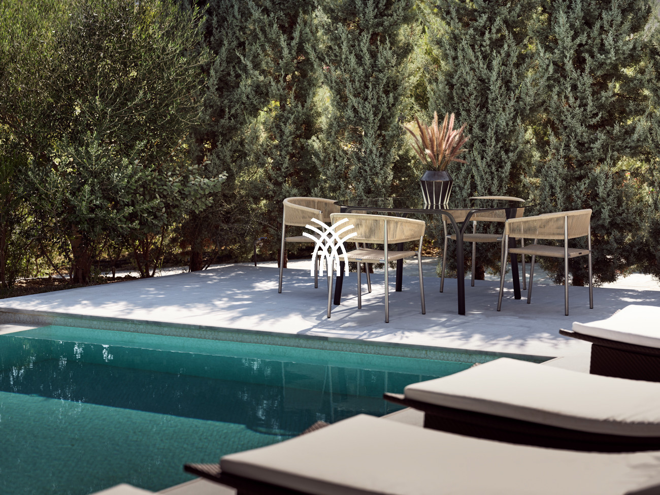 Hidden among the lush landscaped gardens of the exclusive Butterflies estate on the island of Zakynthos in Greece, Villa Plumeria is an intimate yet refined retreat thoughtfully arranged across three separate floors, perfectly suited to a multi-generational family or group of up to five guests seeking both closeness and privacy. Each bedroom is positioned as its own peaceful haven, allowing everyone to enjoy personal space while sharing the pleasures of a beautifully designed summer residence. Mornings begin with freshly brewed coffee on the private top-floor veranda, where sweeping views over Tsilivi Bay set a serene tone for the day, followed by leisurely walks along the path to the beach for sun-drenched swimming, gentle paddling, or snorkeling in the clear Ionian waters. Afternoons invite relaxed moments beside the private swimming pool while children play freely on the surrounding lawn, completing the effortless rhythm of island living. Inside, the villa reveals a design-led aesthetic defined by luminous white marble floors, elegant bursts of colour, and a breezy open-plan sitting and dining space framed by floor-to-ceiling windows that open directly onto the pool terrace, dissolving the boundary between indoors and out. Ideal for travellers searching for a luxury villa rental Greece experience or an unforgettable luxury villa rental Zakynthos escape, this residence captures the charm, comfort, and understated sophistication of a private garden sanctuary by the sea.