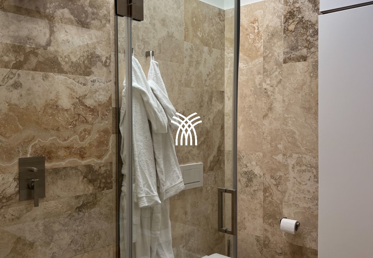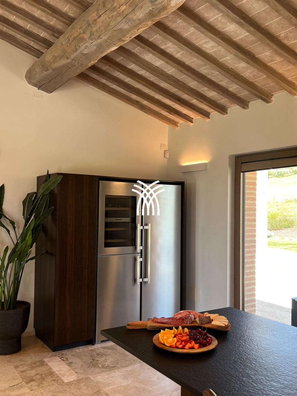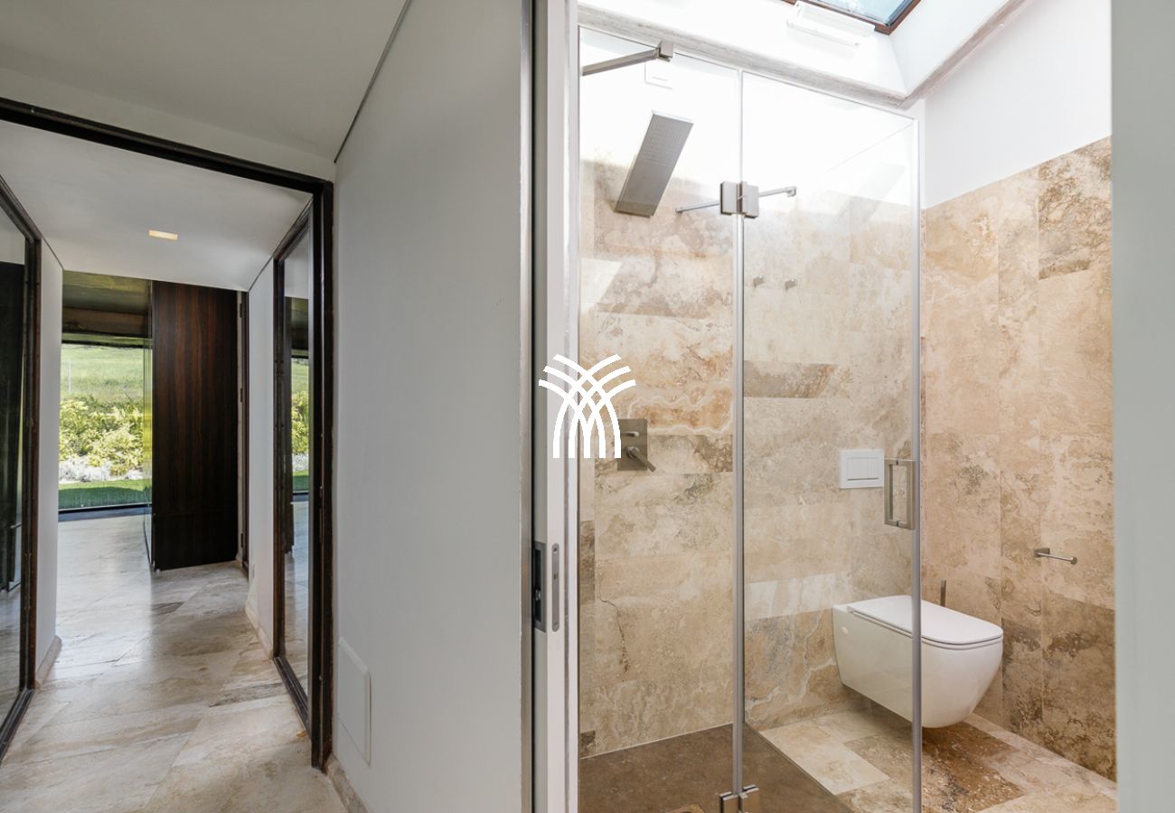 The villa’s interiors are a showcase of Italian craftsmanship and eco-conscious design. Natural materials and biodegradable cleaning products are used throughout, creating a refined yet responsible living environment. Solar panels heat the water, while heat pumps regulate pool temperature seasonally. The underfloor climate system ensures year-round comfort, and an aromatic garden attracts butterflies and bees while providing fresh herbs for your meals.